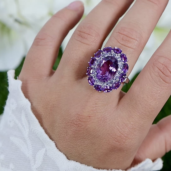 Amethyst Cocktail Ring Tanzanite Halo 7.8 Carats