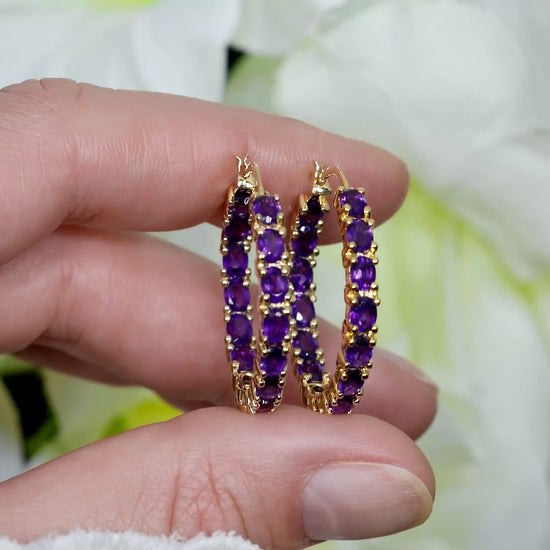 Amethyst Hoop Earrings 4.8 Carats 14K Yellow Gold Plated Silver