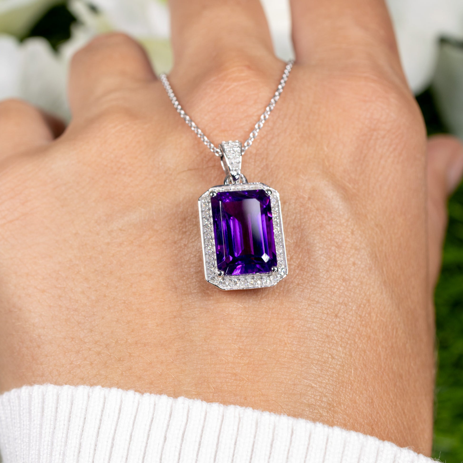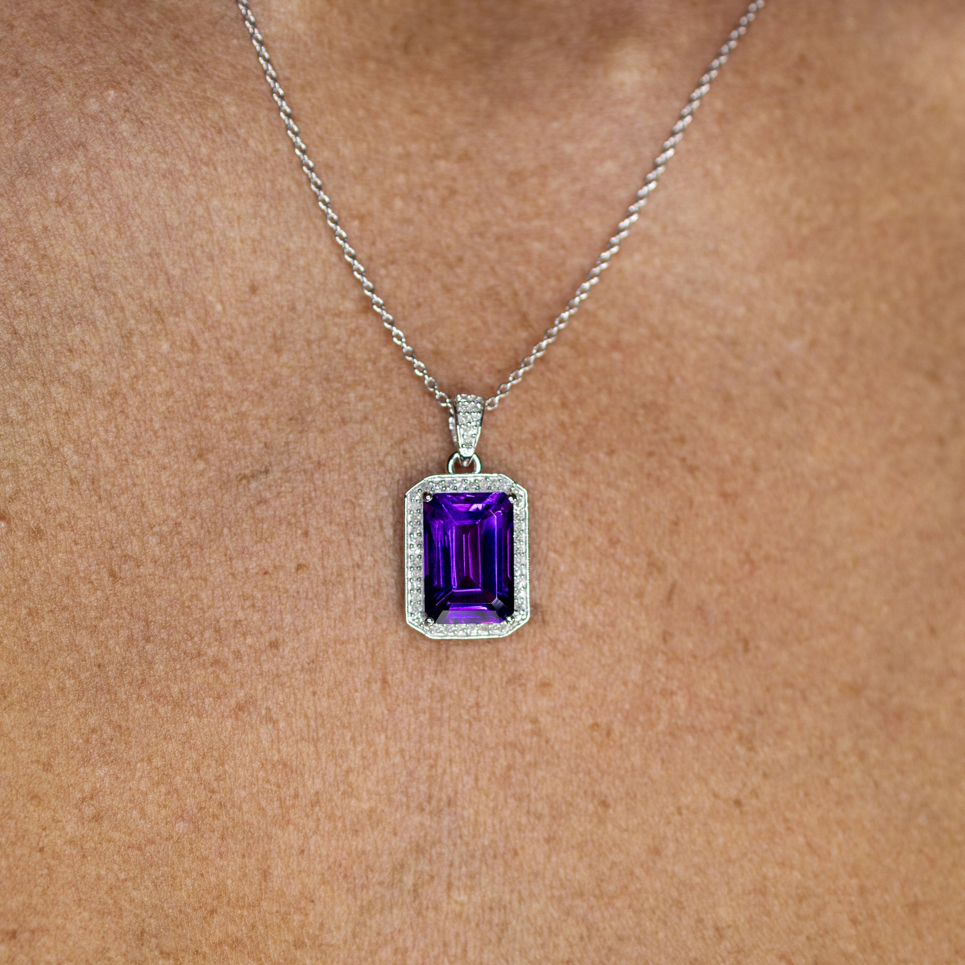 Amethyst Pendant Necklace Diamond Halo 5.34 Carats Sterling Silver