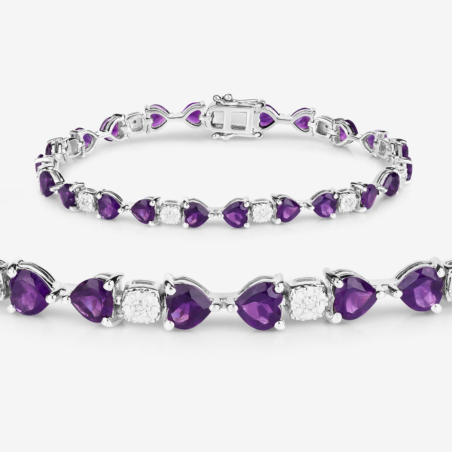 Amethyst Tennis Bracelet White Diamonds 9.5 Carats Sterling Silver