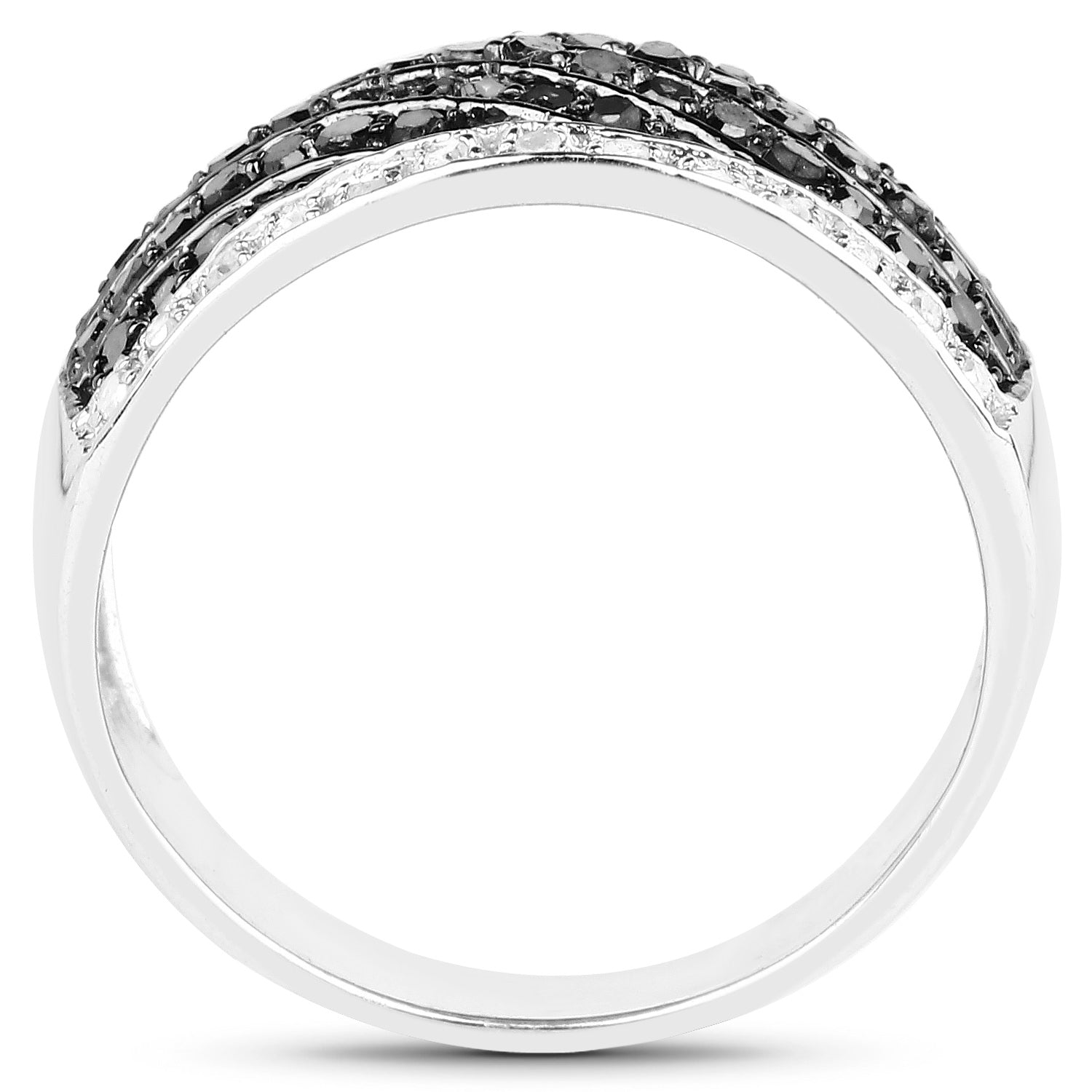 Black Diamond Cluster Ring White Diamonds 0.78 Carats Sterling Silver