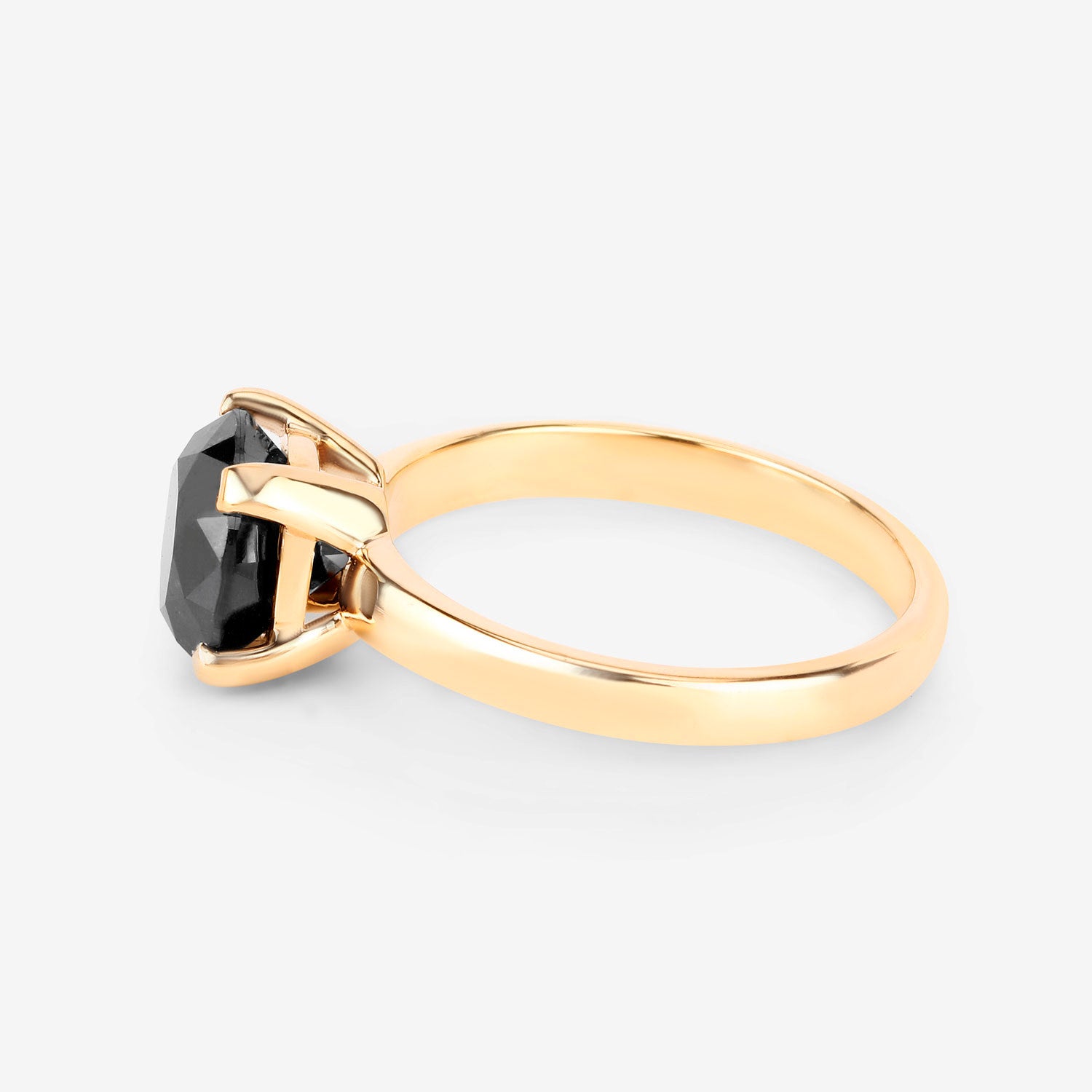 Black Diamond Solitaire Ring 3 Carat 14K Yellow Gold