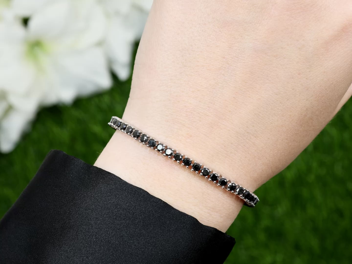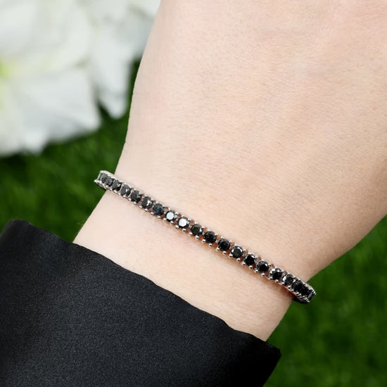 Black Diamond Tennis Bracelet 5.40 Carats 18K White Gold Plated Sterling Silver