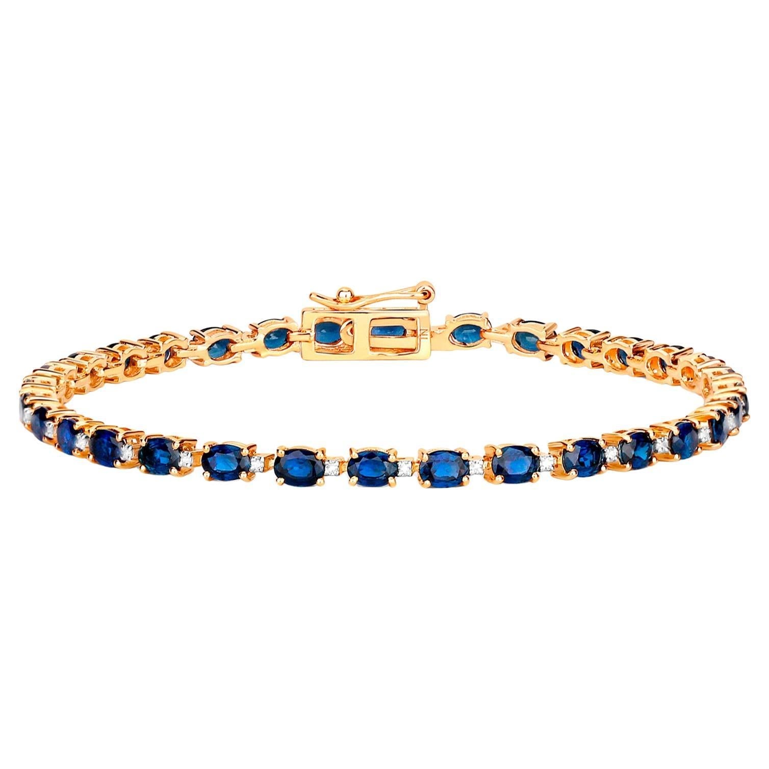Blue Oval Cut Sapphires Bracelet Diamond Links 6.3 Carats 10K Yellow Gold