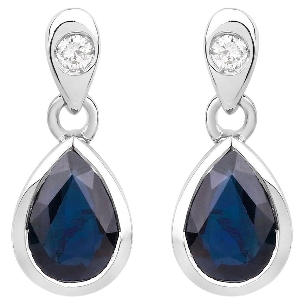 Blue Sapphire Dangle Earrings Diamonds 1.64 Carats 10K White Gold