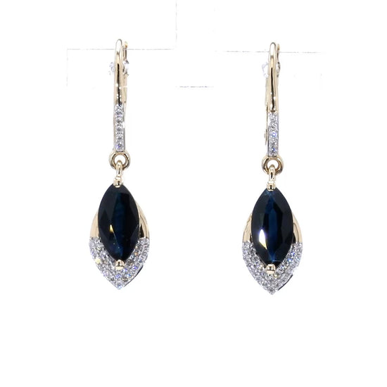 Blue Sapphire Dangle Earrings Diamonds 2.7 Carats 14K Yellow Gold