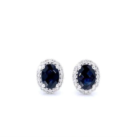 Blue Sapphire Earrings Diamonds 2.15 Carats 14K White Gold