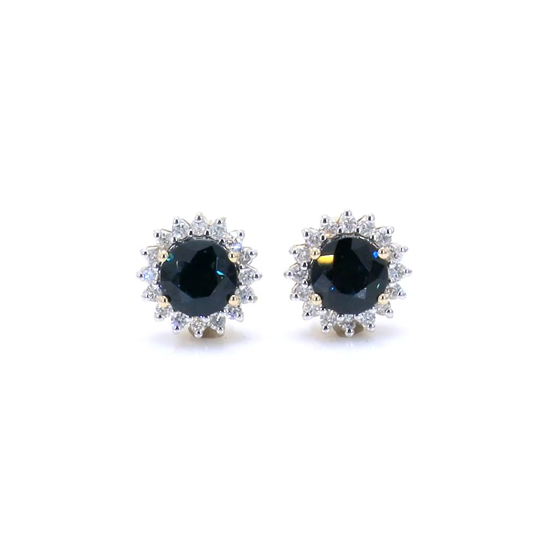 Blue Sapphire Halo Earrings Diamonds 2.3 Carats 14K Yellow Gold