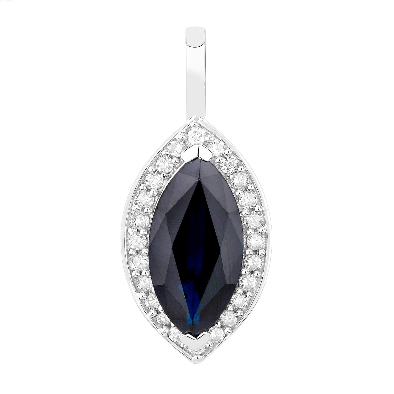 Blue Sapphire Pendant Necklace Diamonds 2.28 Carats 10K White Gold