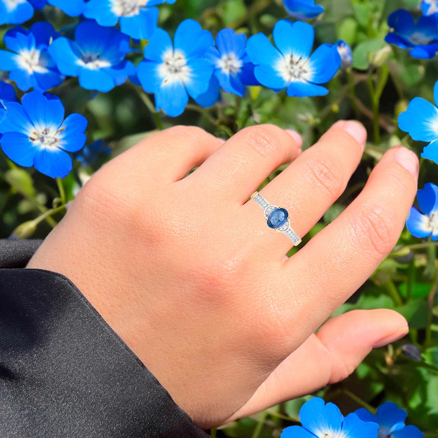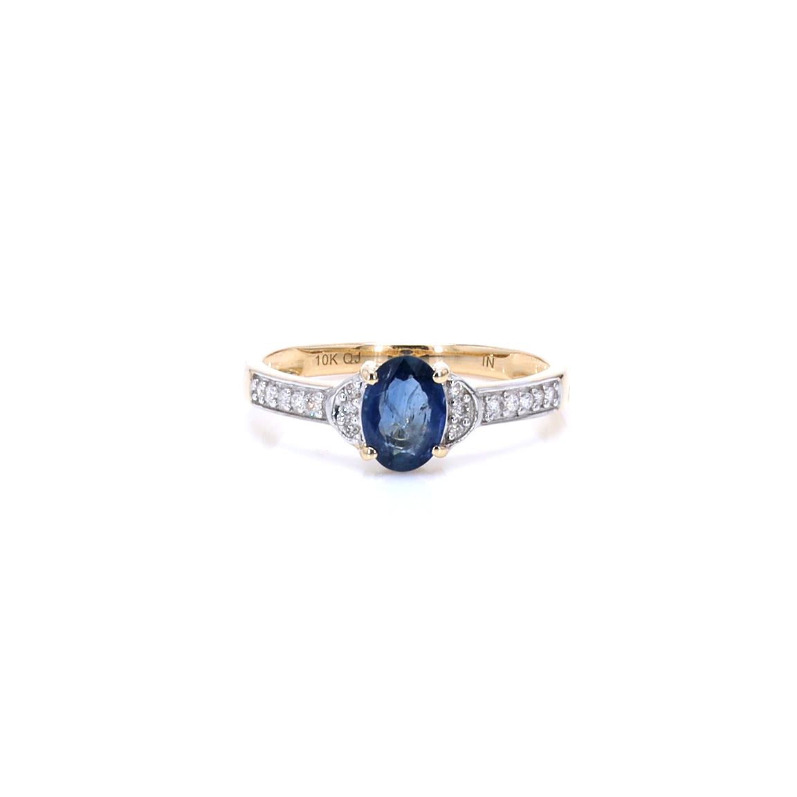 Blue Sapphire Ring White Diamonds 1.04 Carats 10K Yellow Gold