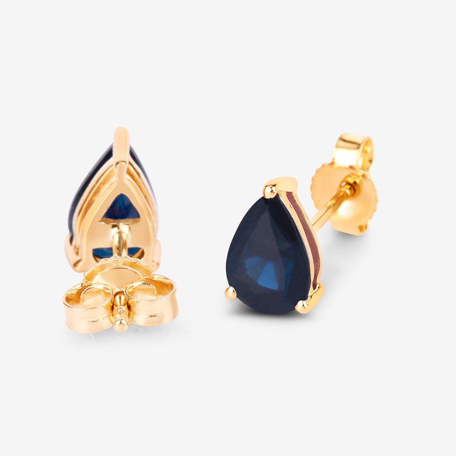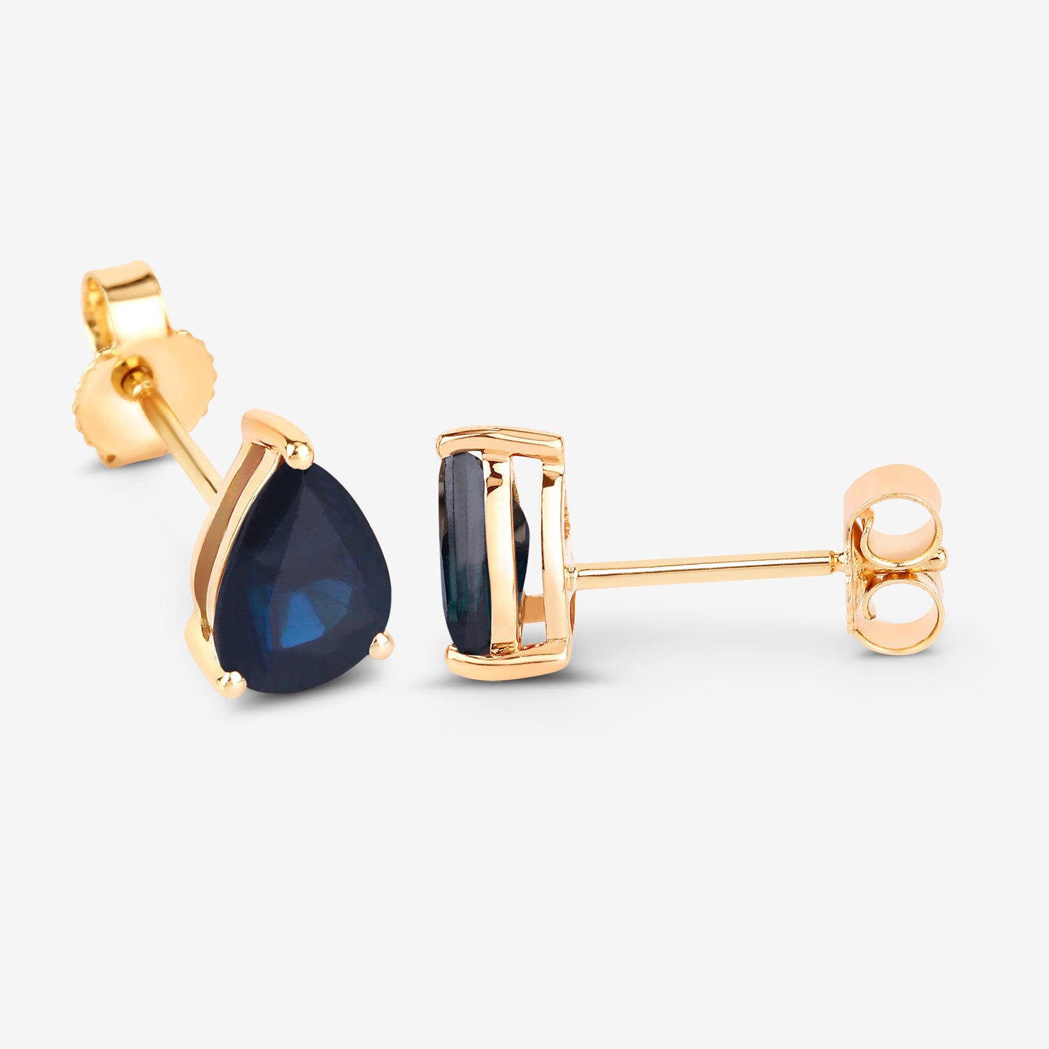 Blue Sapphire Stud Earrings 1.59 Carats 10K Yellow Gold