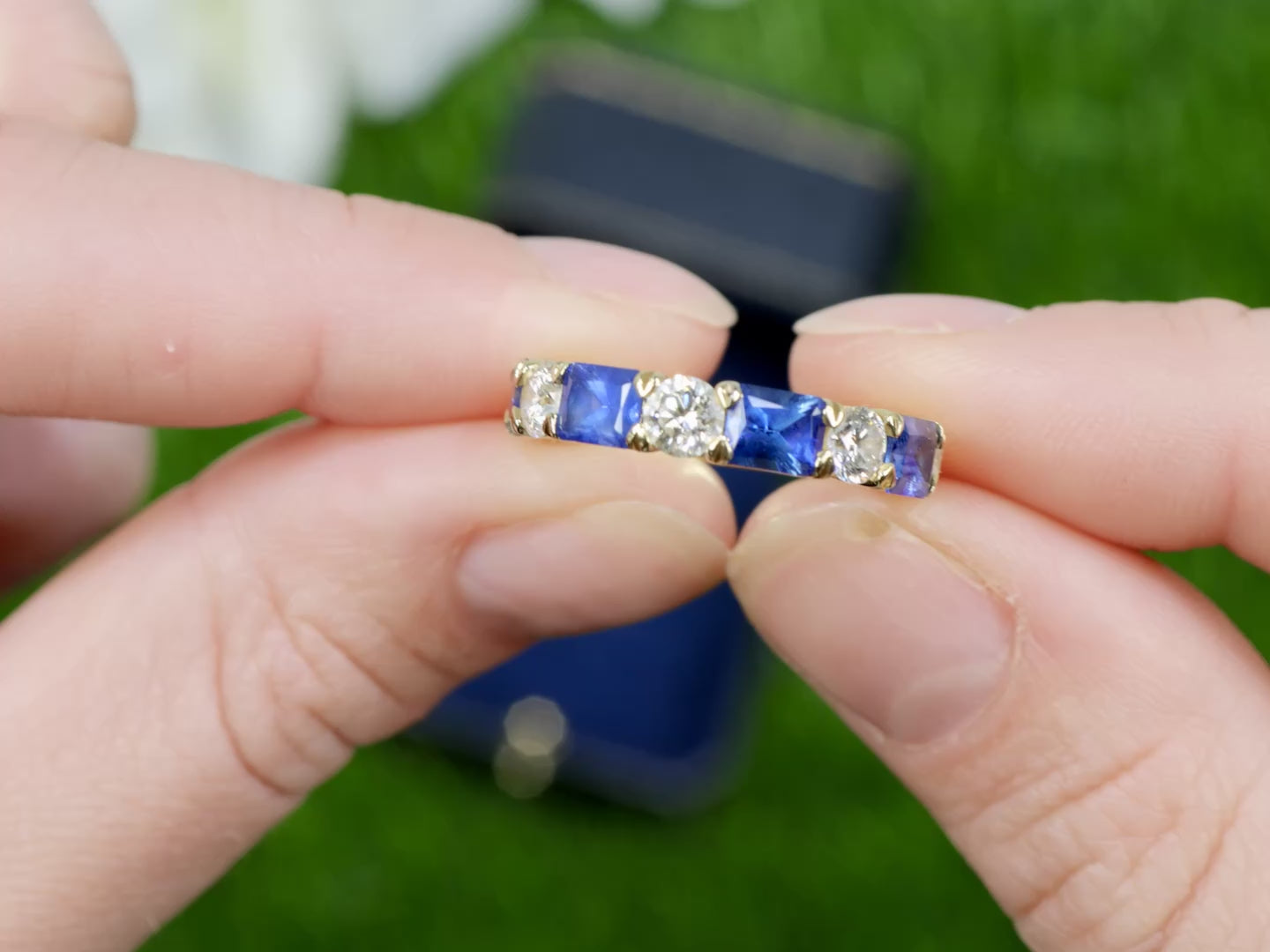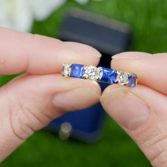 Blue Sapphires Diamonds Half Eternity Band Ring 3.29 Carats 18K Yellow Gold