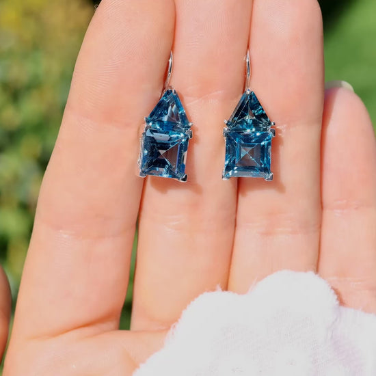 Blue Topaz Earrings 9.71 Carats 18K White Gold