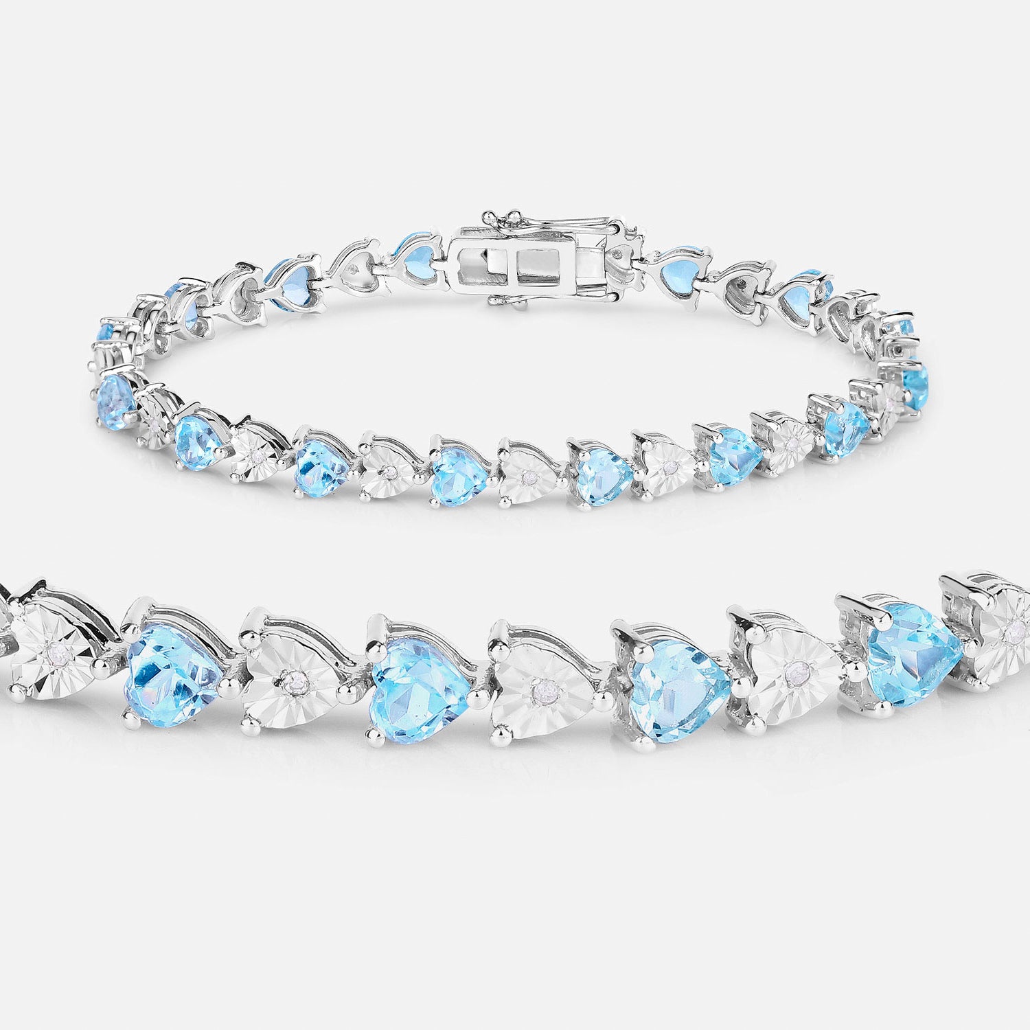 Blue Topaz Tennis Bracelet Diamonds 7.6 Carats Sterling Silver