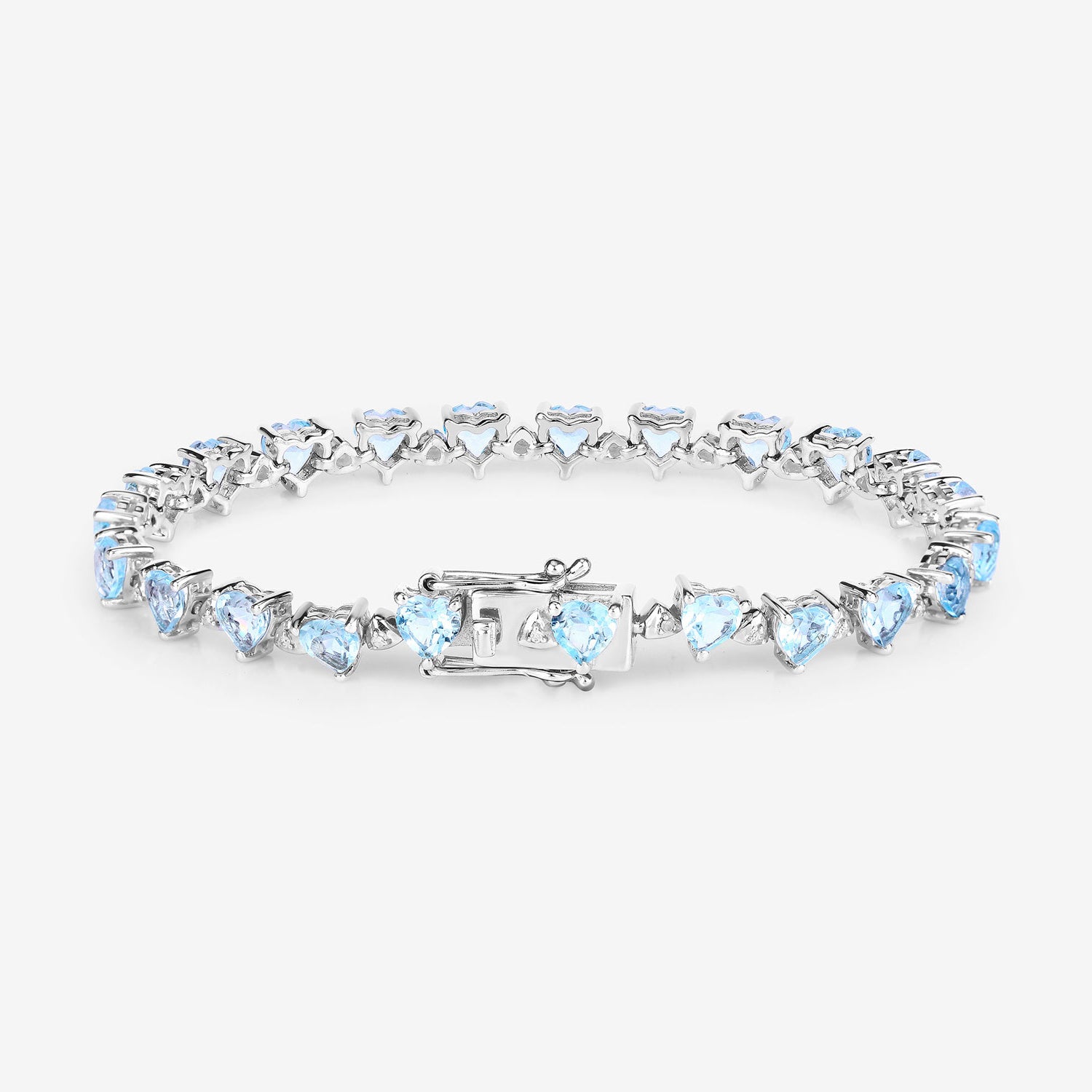 Blue Topaz Tennis Bracelet White Diamonds 11.6 Carats Silver