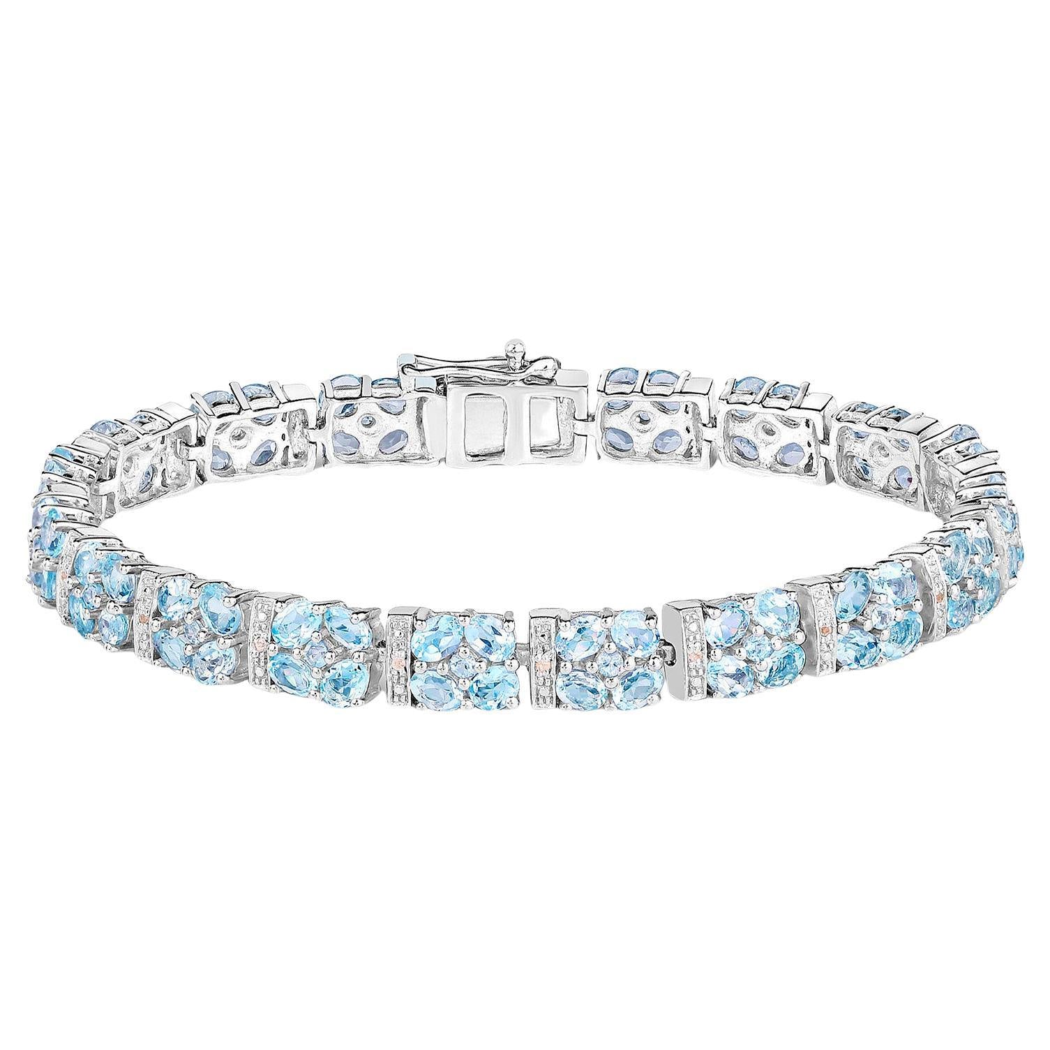 Blue Topaz Tennis Bracelet White Topaz 15 Carats Sterling Silver