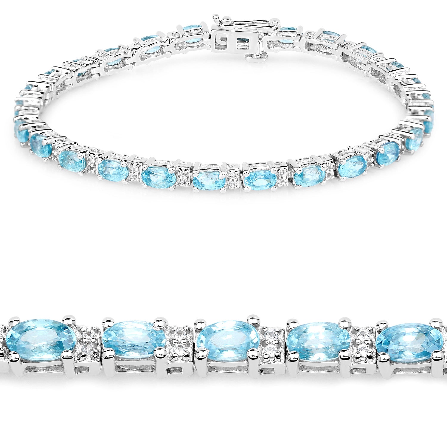 Blue Zircon Tennis Bracelet White Topaz 8.8 Carats Sterling Silver