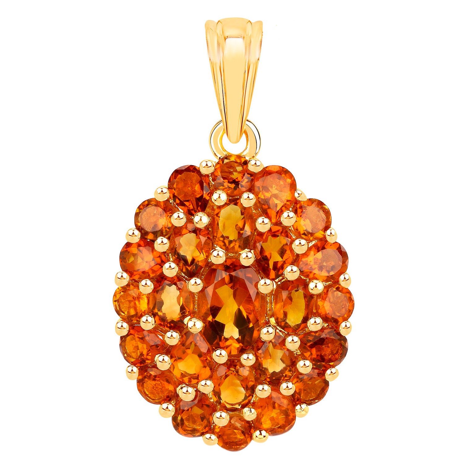 Citrine Cluster Pendant Necklace 4.06 Carats 18K Yellow Gold Plated Silver