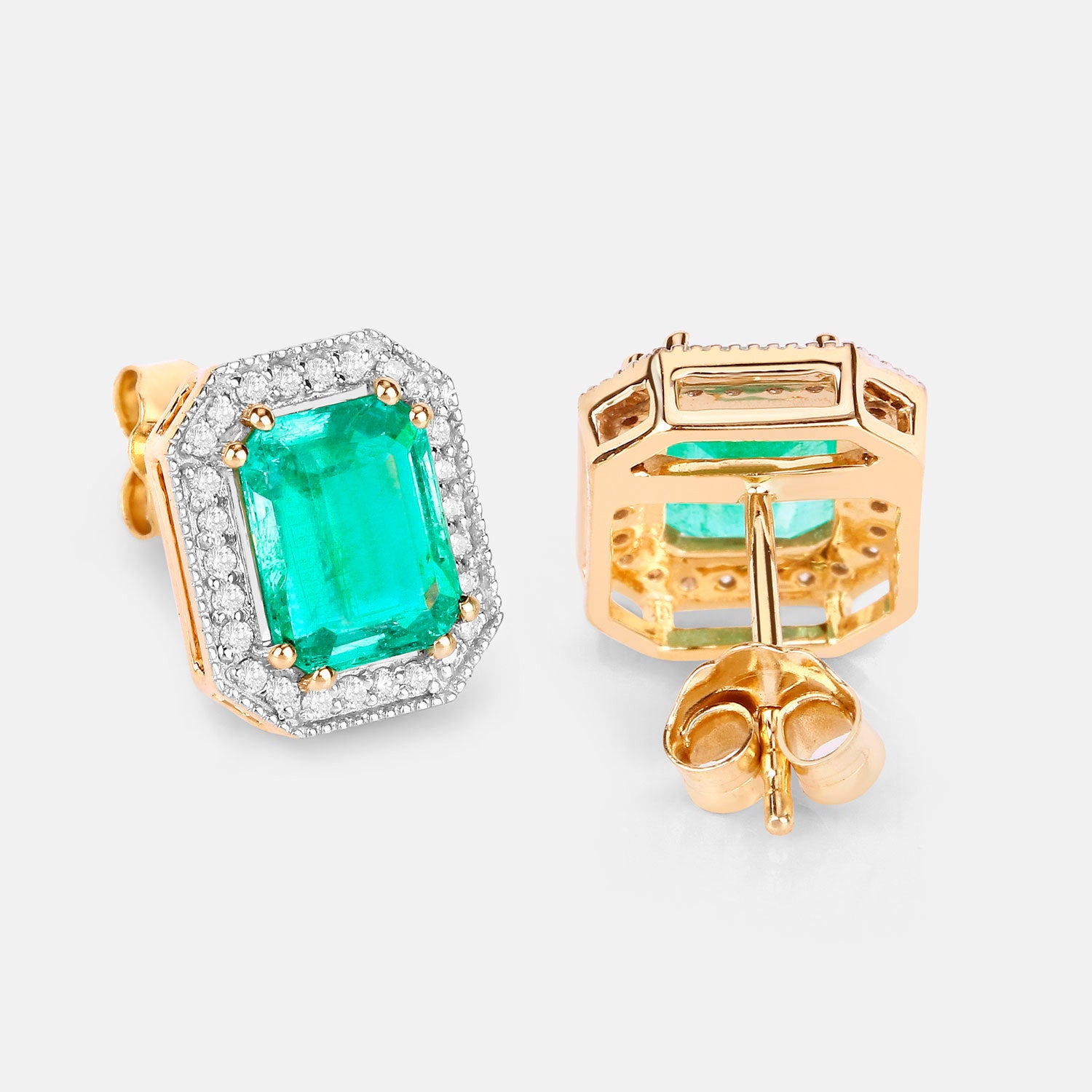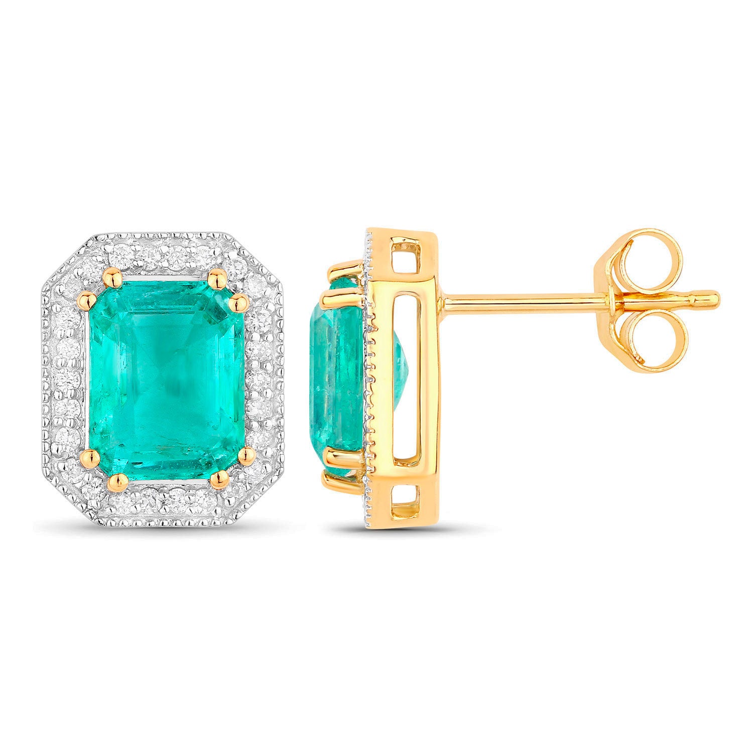 Ethiopian Emerald Stud Earrings Diamond Halo 2.9 Carats 14K Yellow Gold