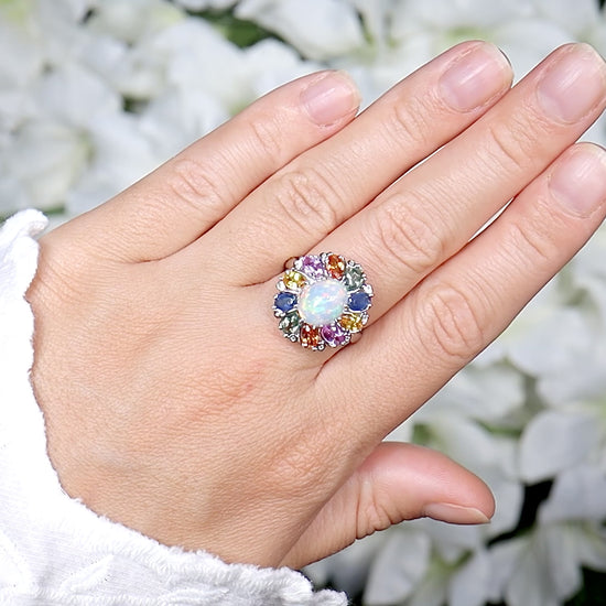 Ethiopian Opal Floral Cocktail Ring Multicolor Sapphires Diamonds 3.95 Carats
