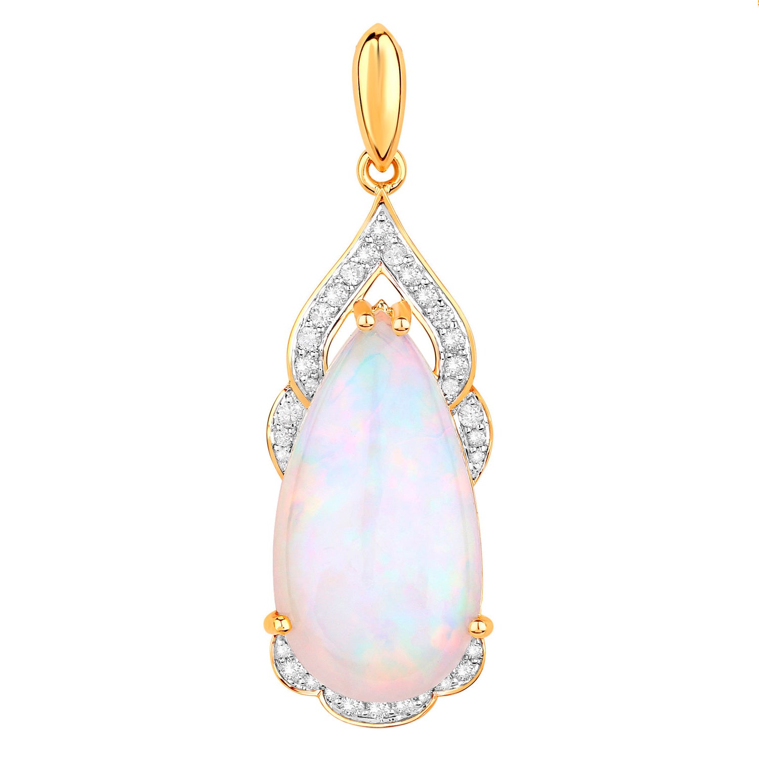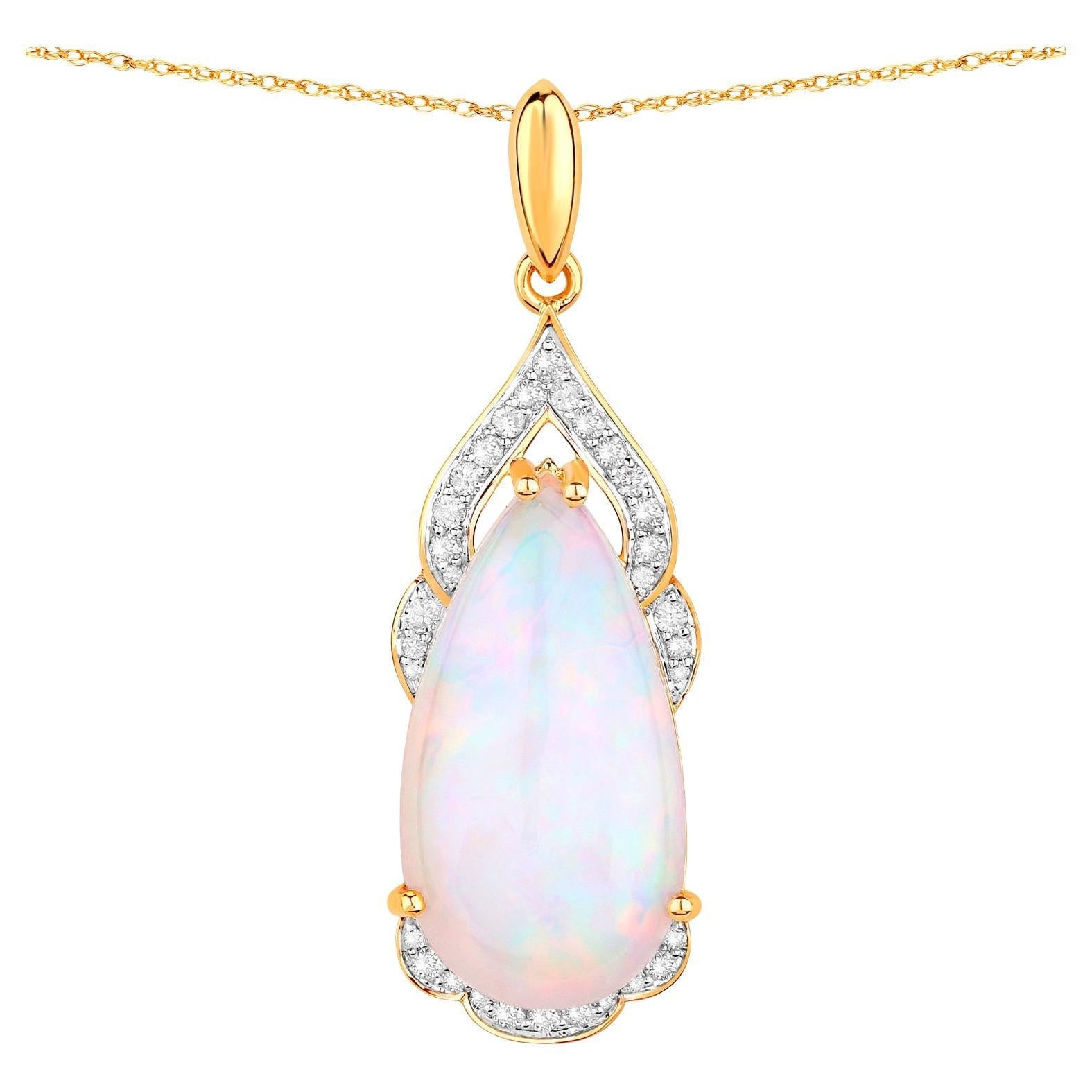 Ethiopian Opal Pendant Necklace Diamonds 9.37 Carats 14K Yellow Gold