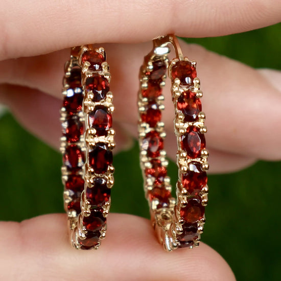 Garnet Hoop Earrings 6 Carats 14K Yellow Gold Plated Silver