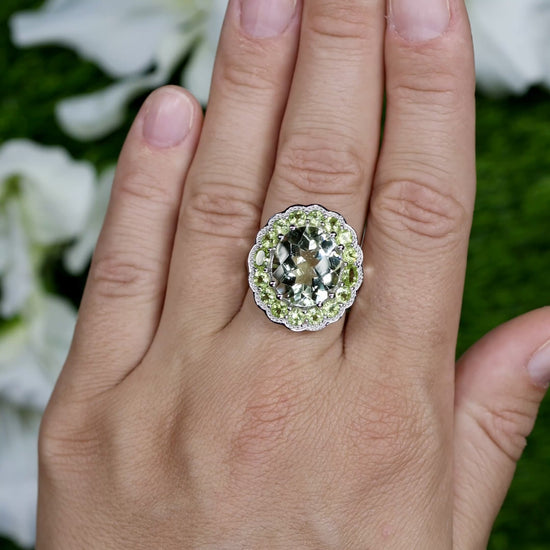 Green Amethyst Cocktail Ring Peridot Halo 7.18 Carats Sterling Silver