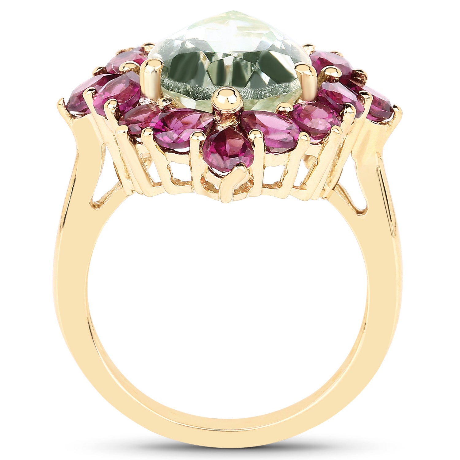 Green Amethyst Ring Rhodolites 7.1 Carats 14K Yellow Gold Plated Silver