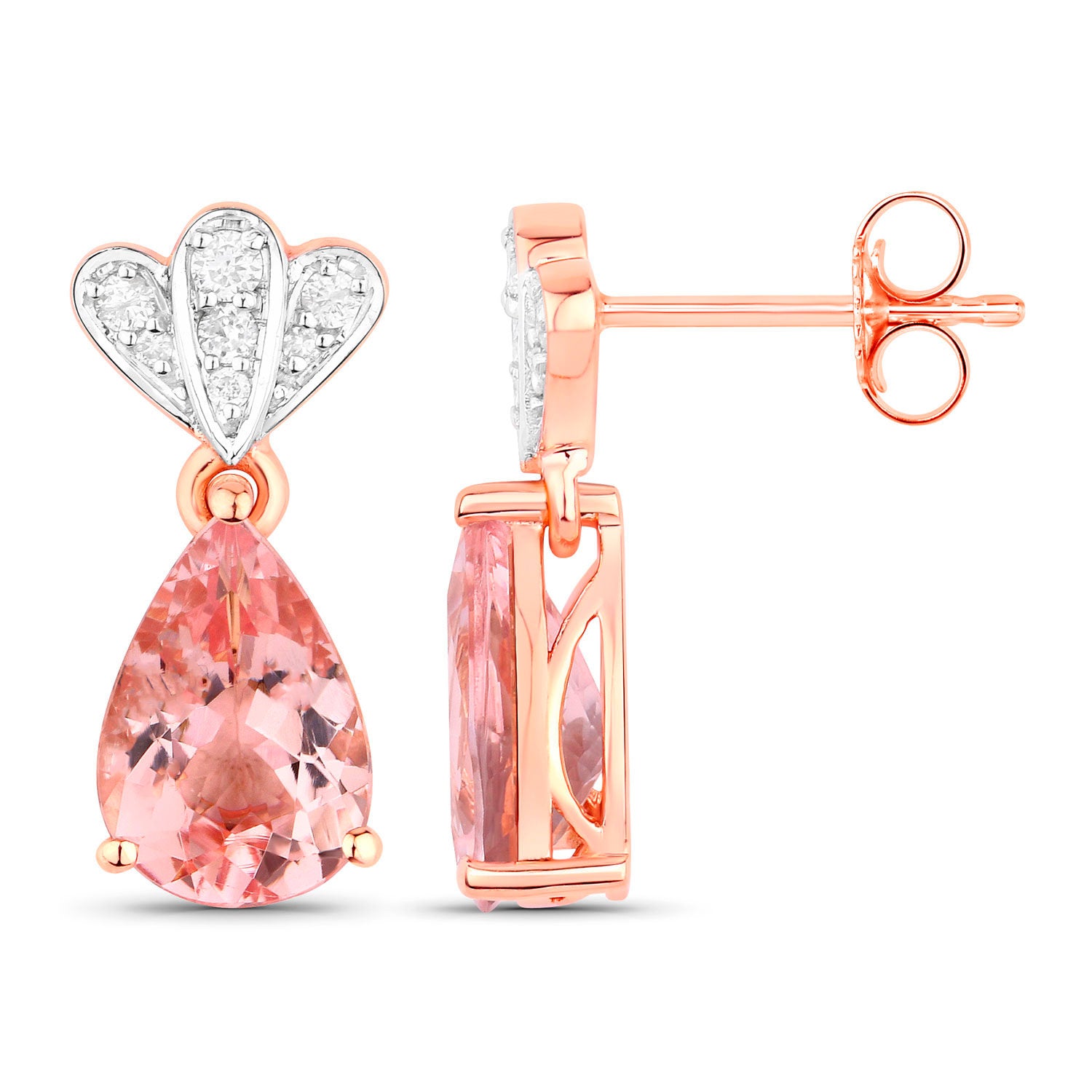 Morganite Drop Earrings Diamond Setting 3.04 Carats 14K Rose Gold