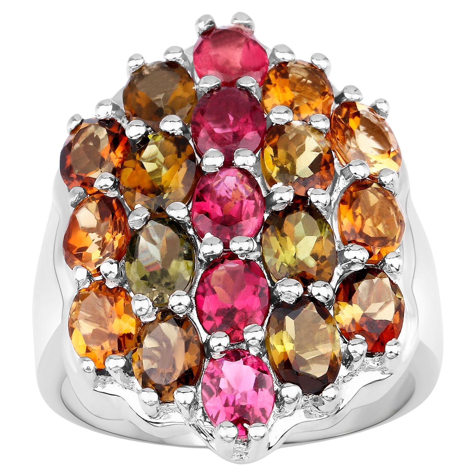 Multicolor Tourmaline Ring 5.89 Carats Rhodium Plated Sterling Silver