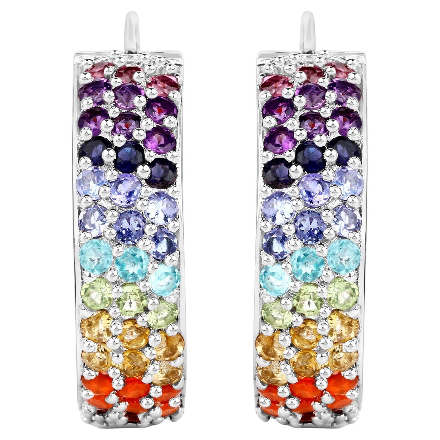 Multicolored Gemstones Cluster Earrings 8.8 Carats 18K White Gold Plated Silver