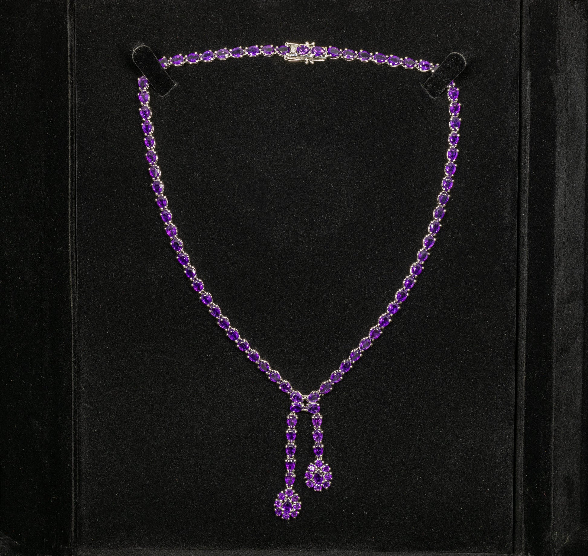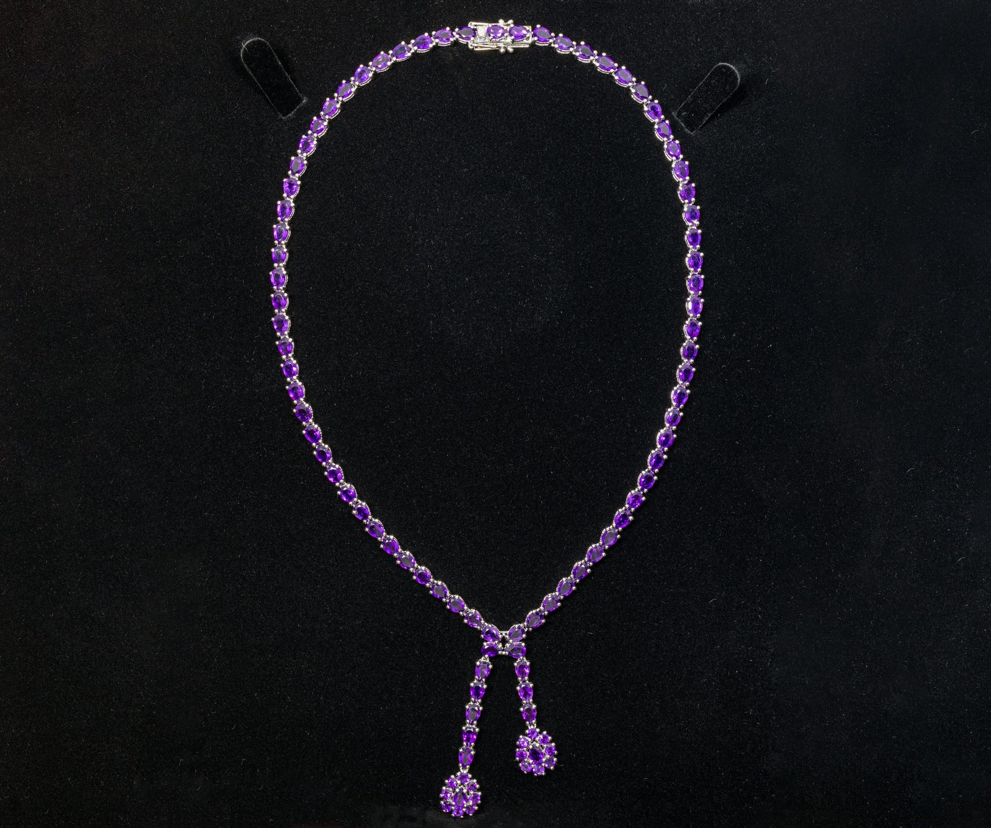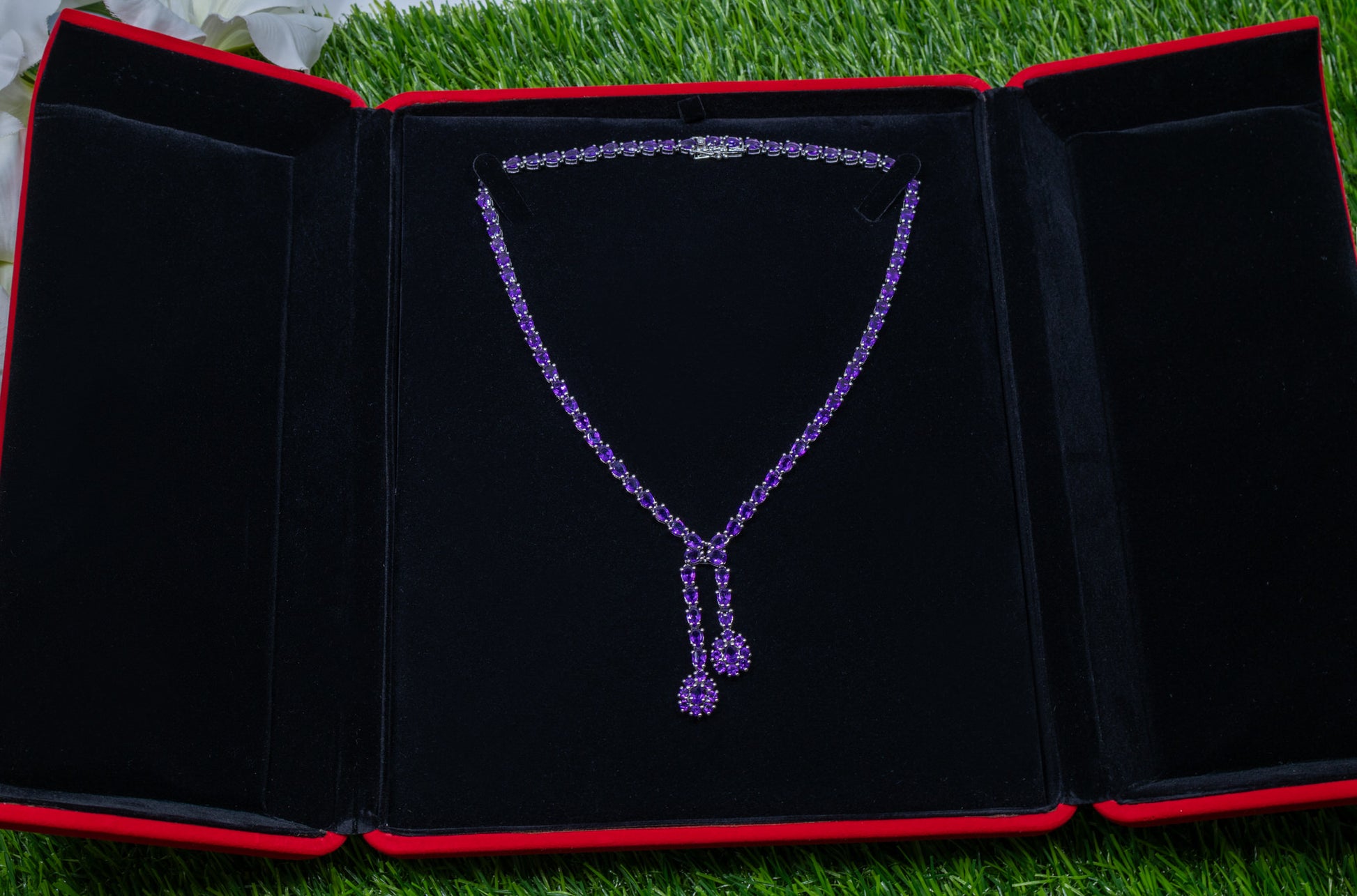 Natural Amethyst Double Drop Necklace 32 Carats Sterling Silver