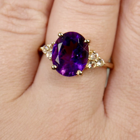 Natural Amethyst Ring With White Topaz 3.43 Carats Gold Plated Silver