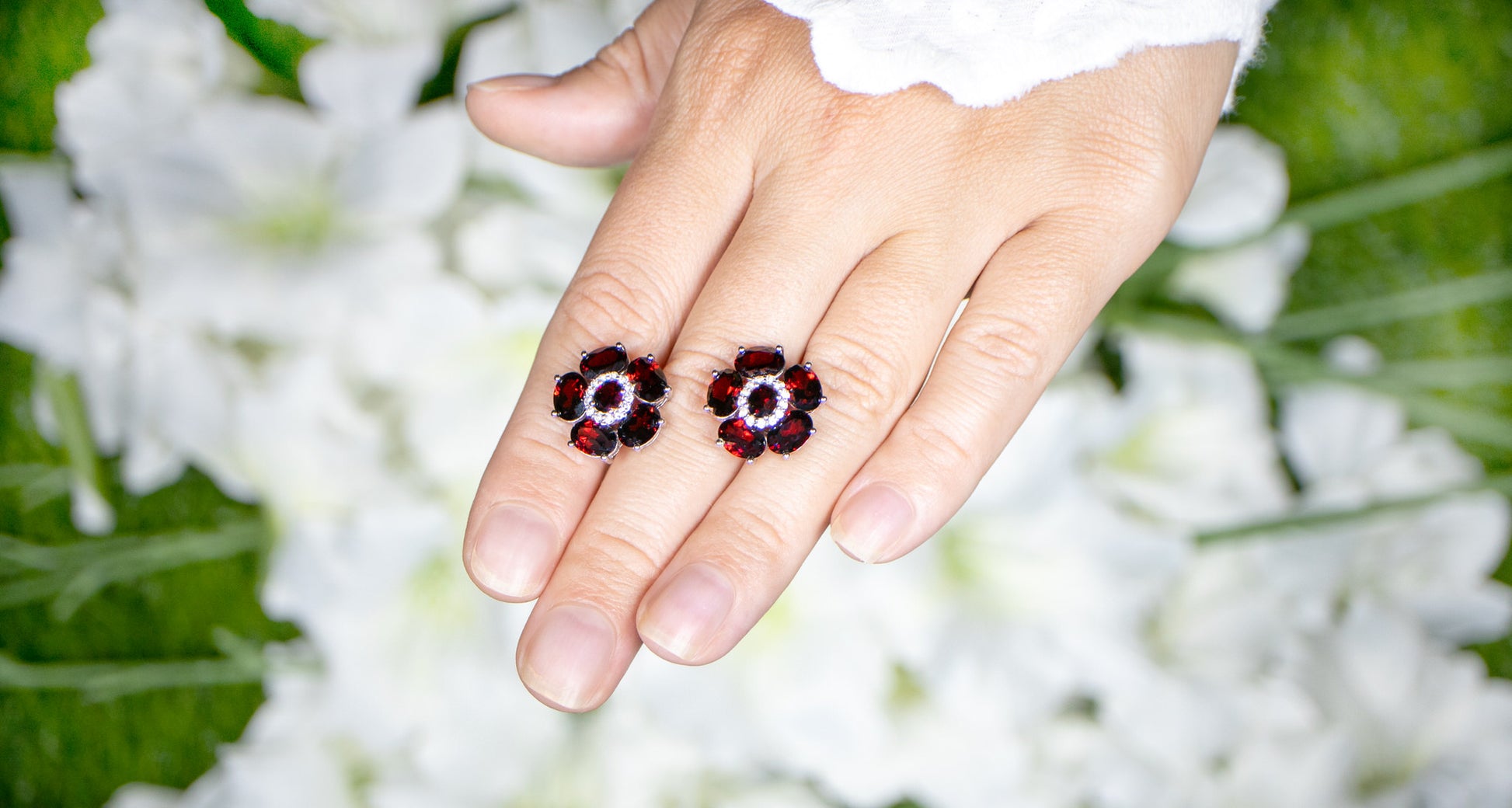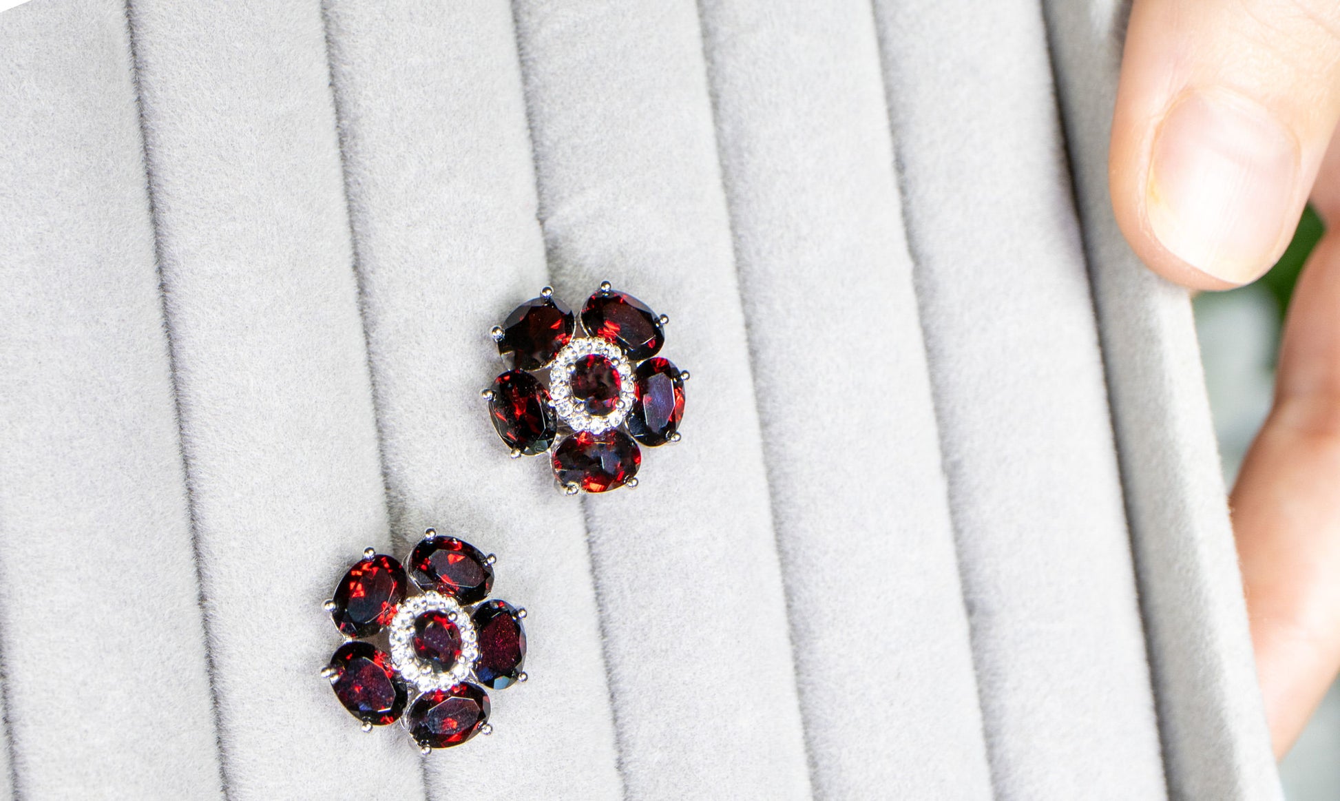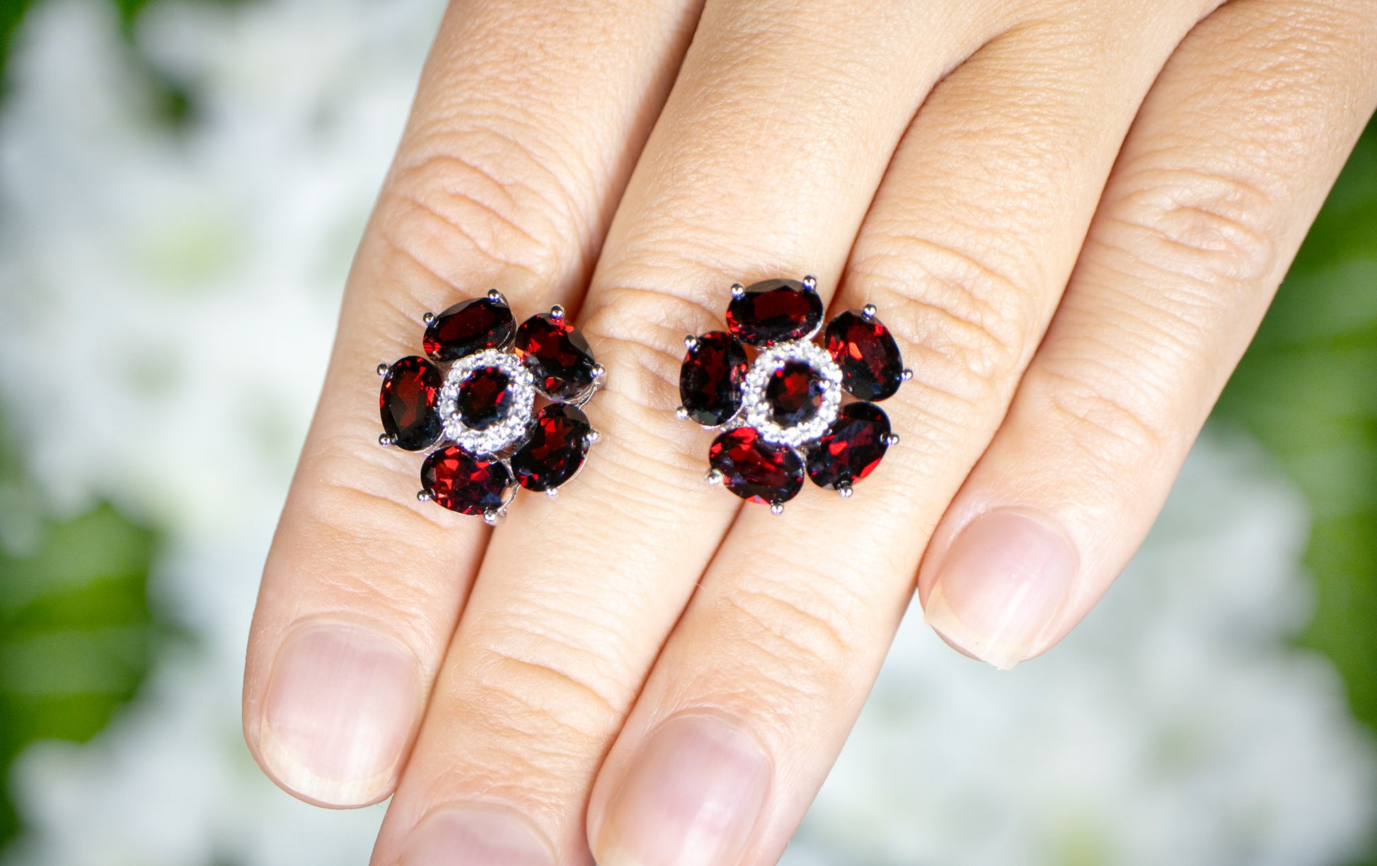 Natural Garnet and White Topaz Floral Earrings 9.6 Carats Total