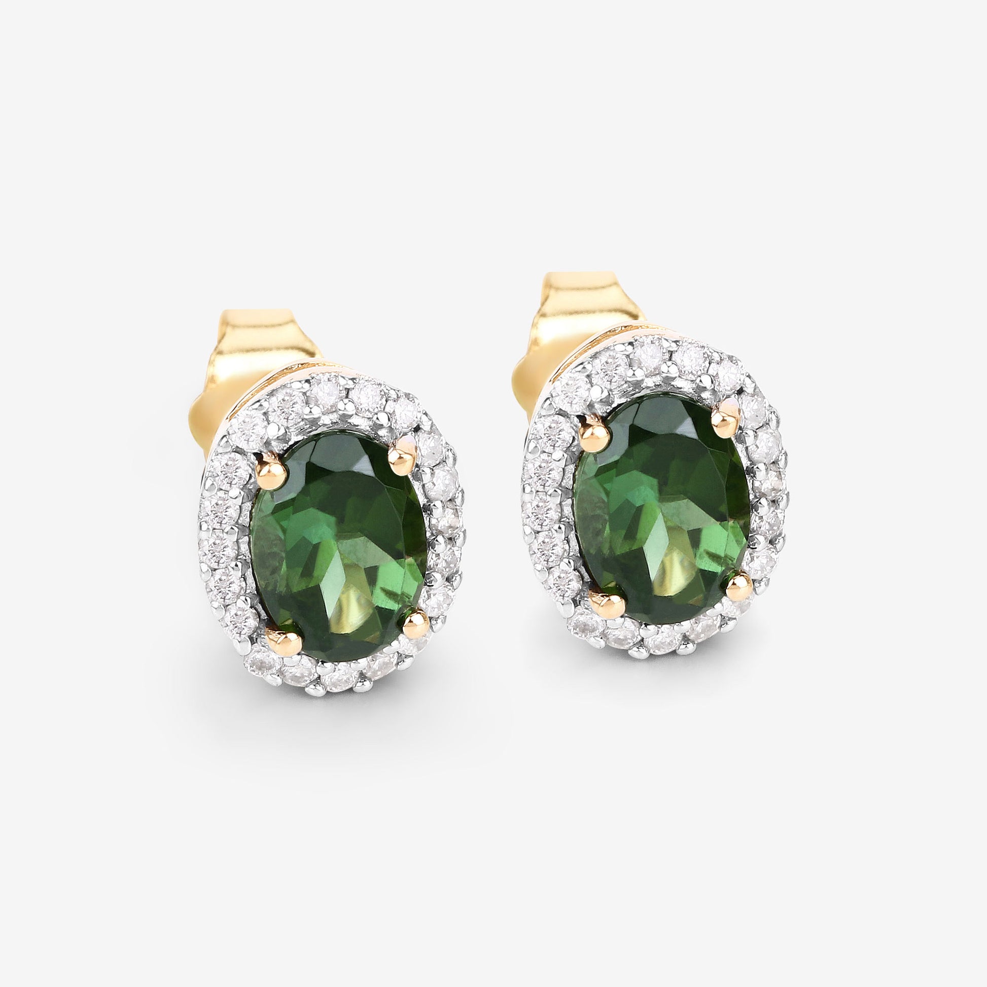 Natural Green Tourmaline and Diamond Halo Earrings 2 Carats 14K Yellow Gold