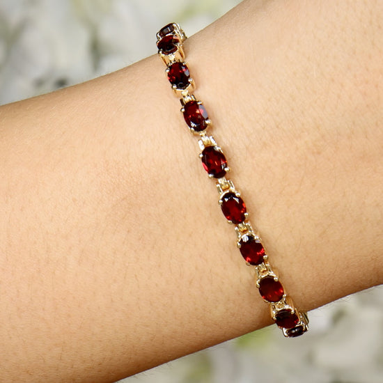 Natural Red Garnet Tennis Bracelet 11 Carats 14K Yellow Gold Plated Silver