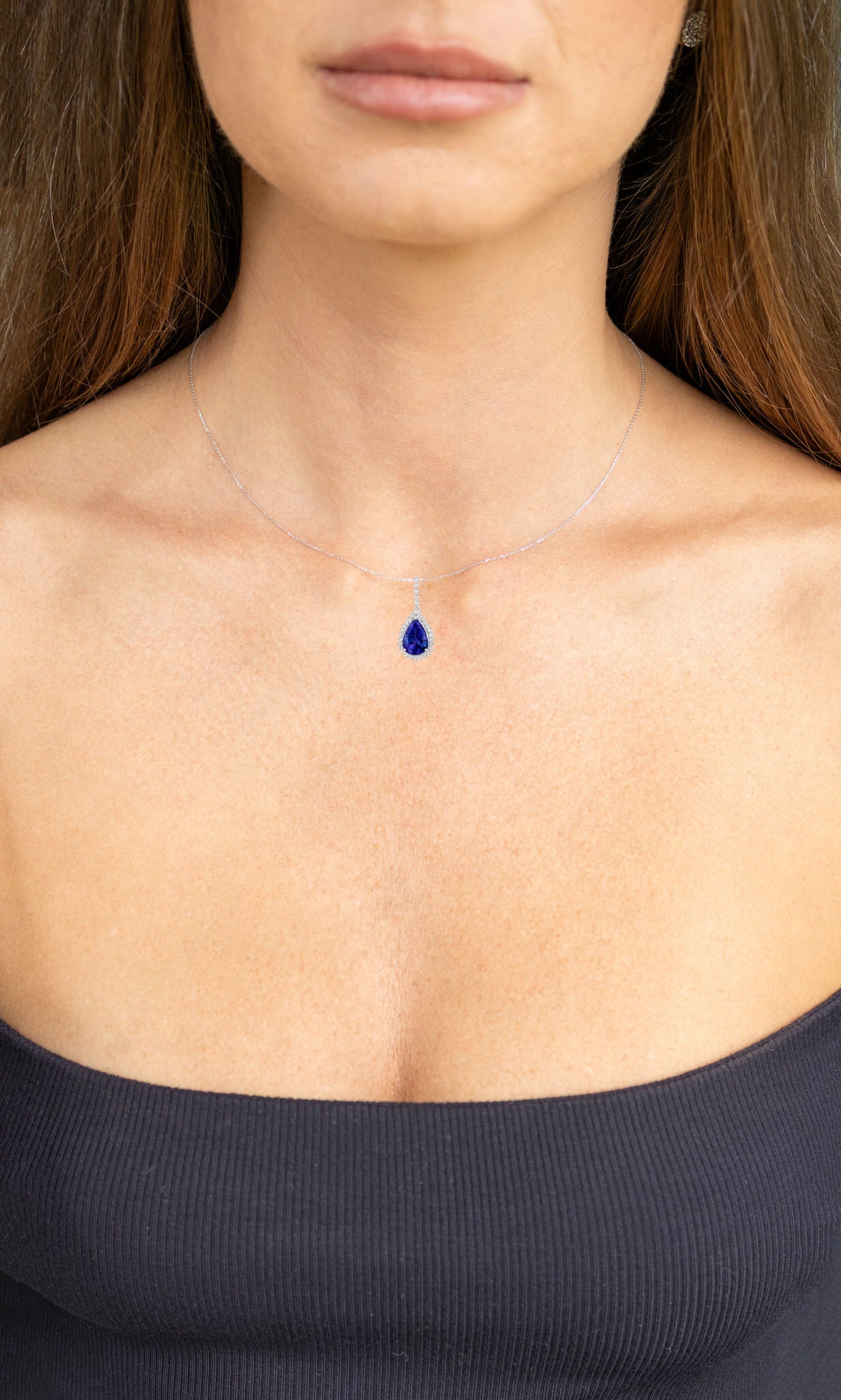Pear Cut Tanzanite Pendant Diamond Setting 3.04 Carats 14K White Gold