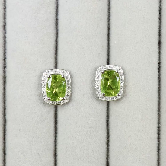 Peridot Stud Earrings White Topaz Halo 3 Carats Sterling Silver