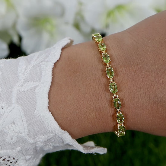Peridot Tennis Bracelet 9.03 Carats 18K Yellow Gold Plated Sterling Silver