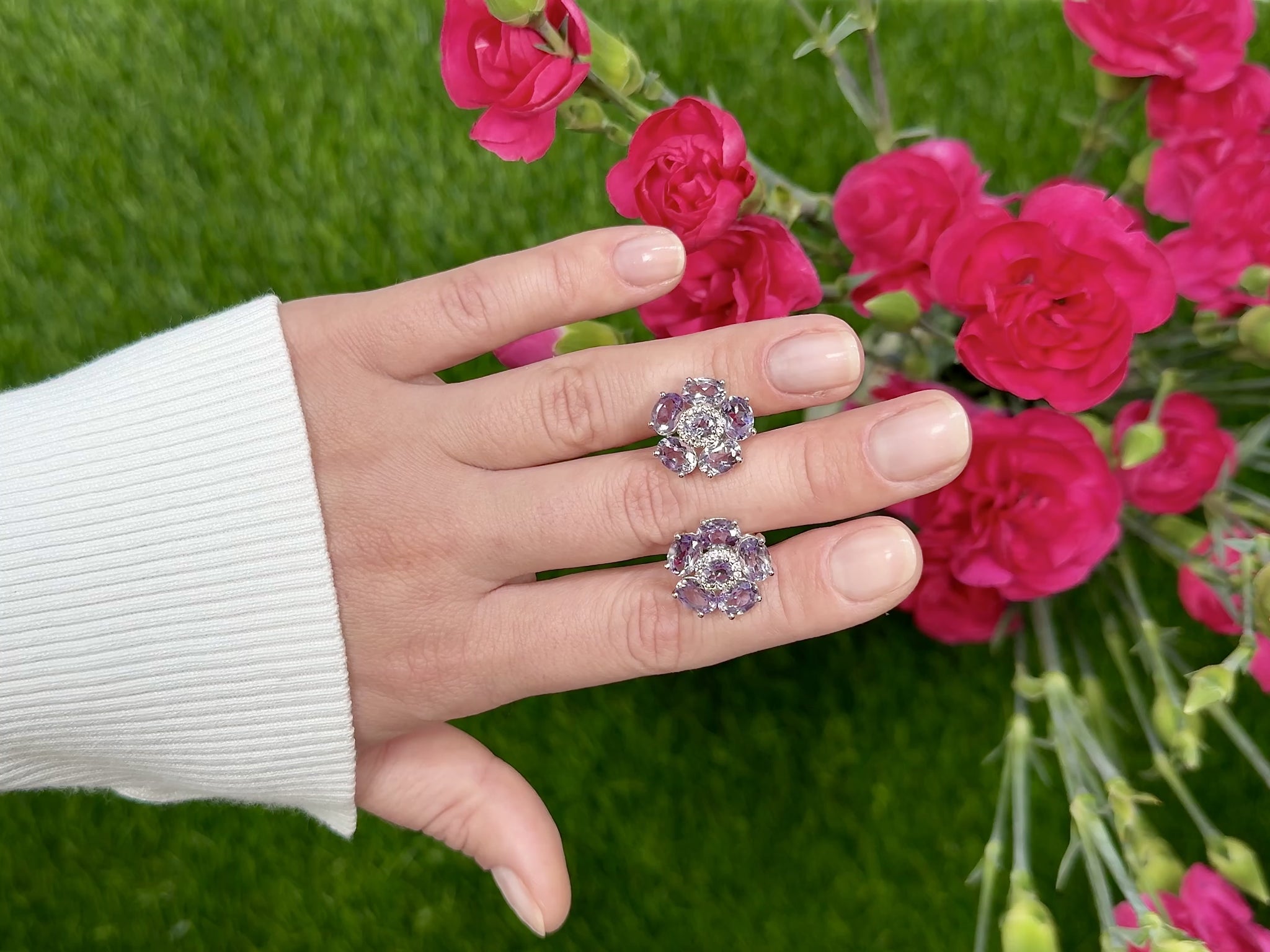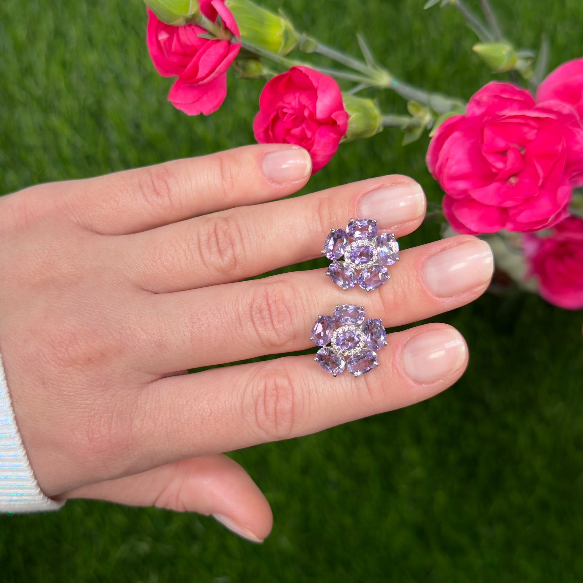 Pink Amethyst Floral Earrings 7.7 Carats 18K White Gold Plated Sterling Silver