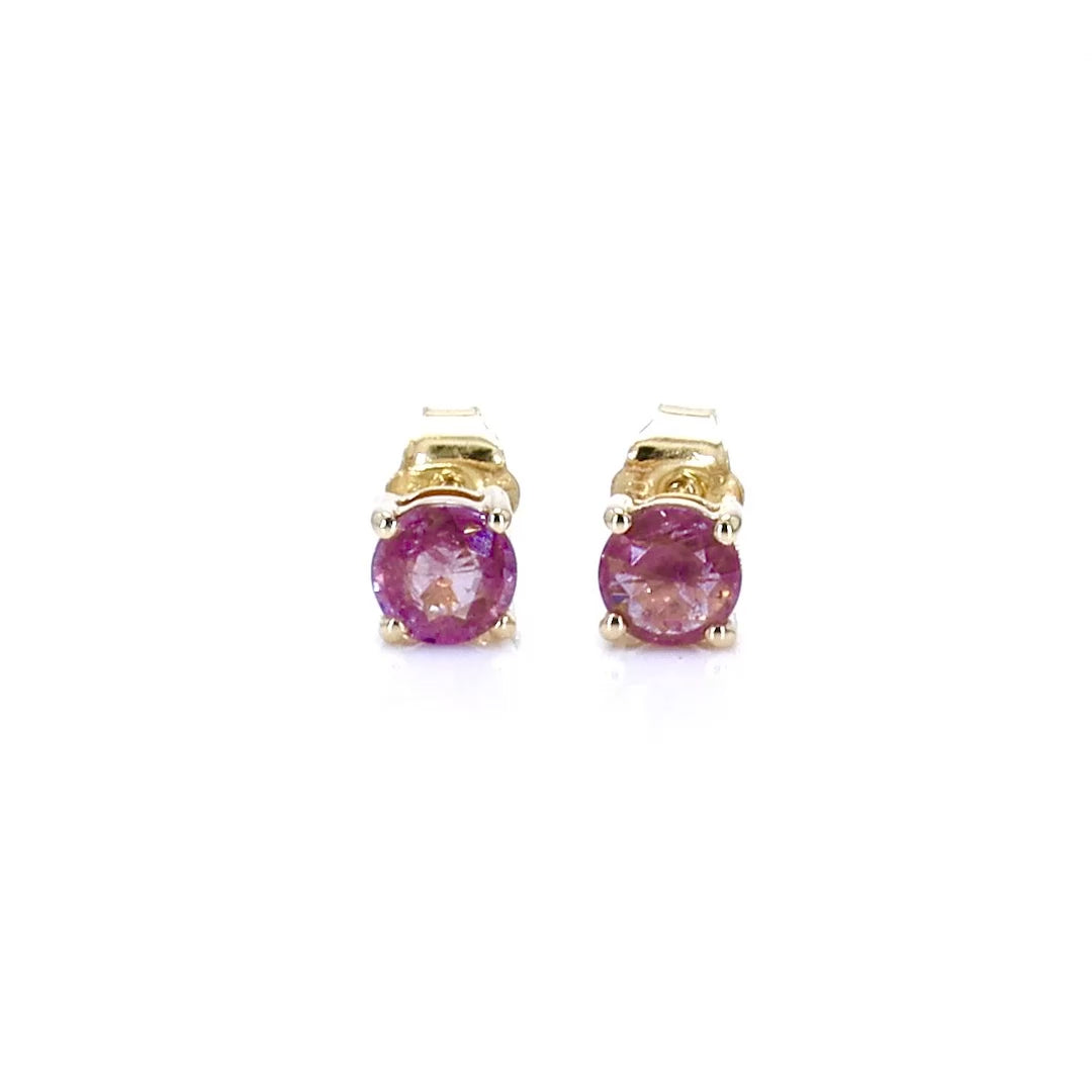 Pink Sapphire Stud Earrings 1.29 Carats 10K Yellow Gold