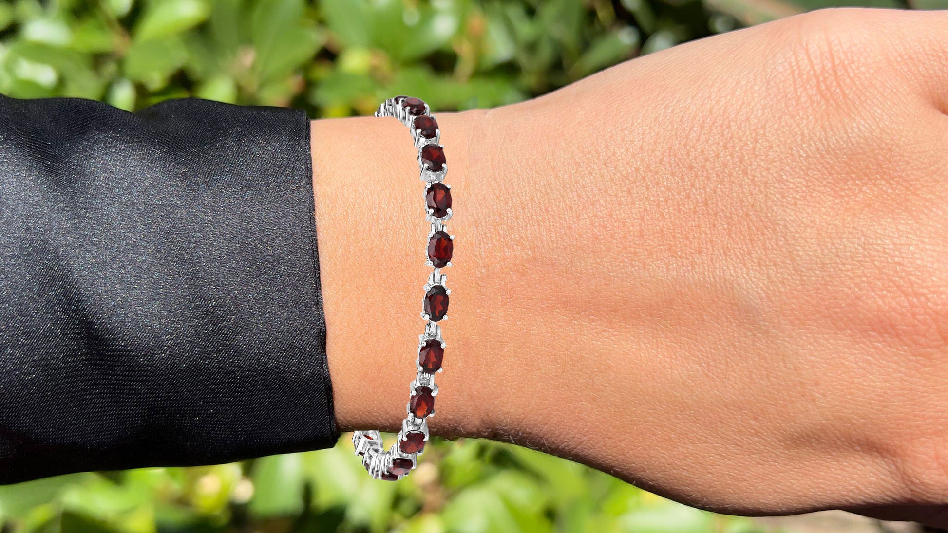 Red Garnet Tennis Bracelet 11.25 Carats Rhodium Plated Sterling Silver