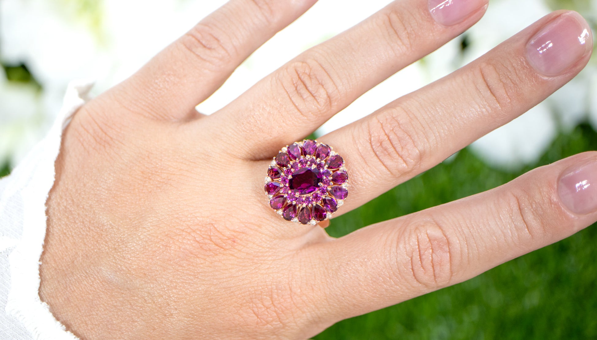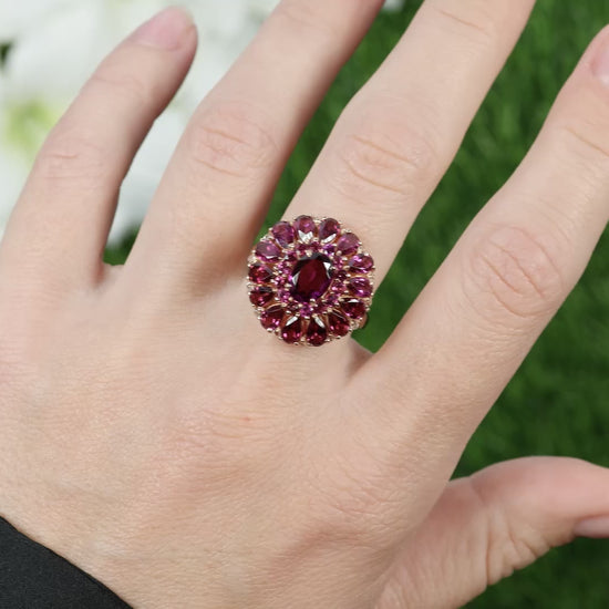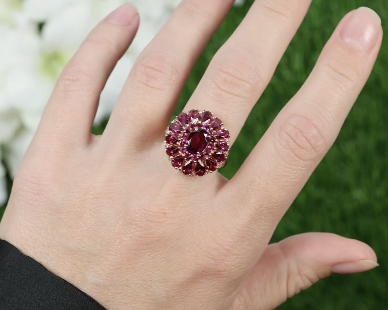 Rhodolite Cocktail Ring White Topaz 6.29 Carats 14K Rose Gold Plated