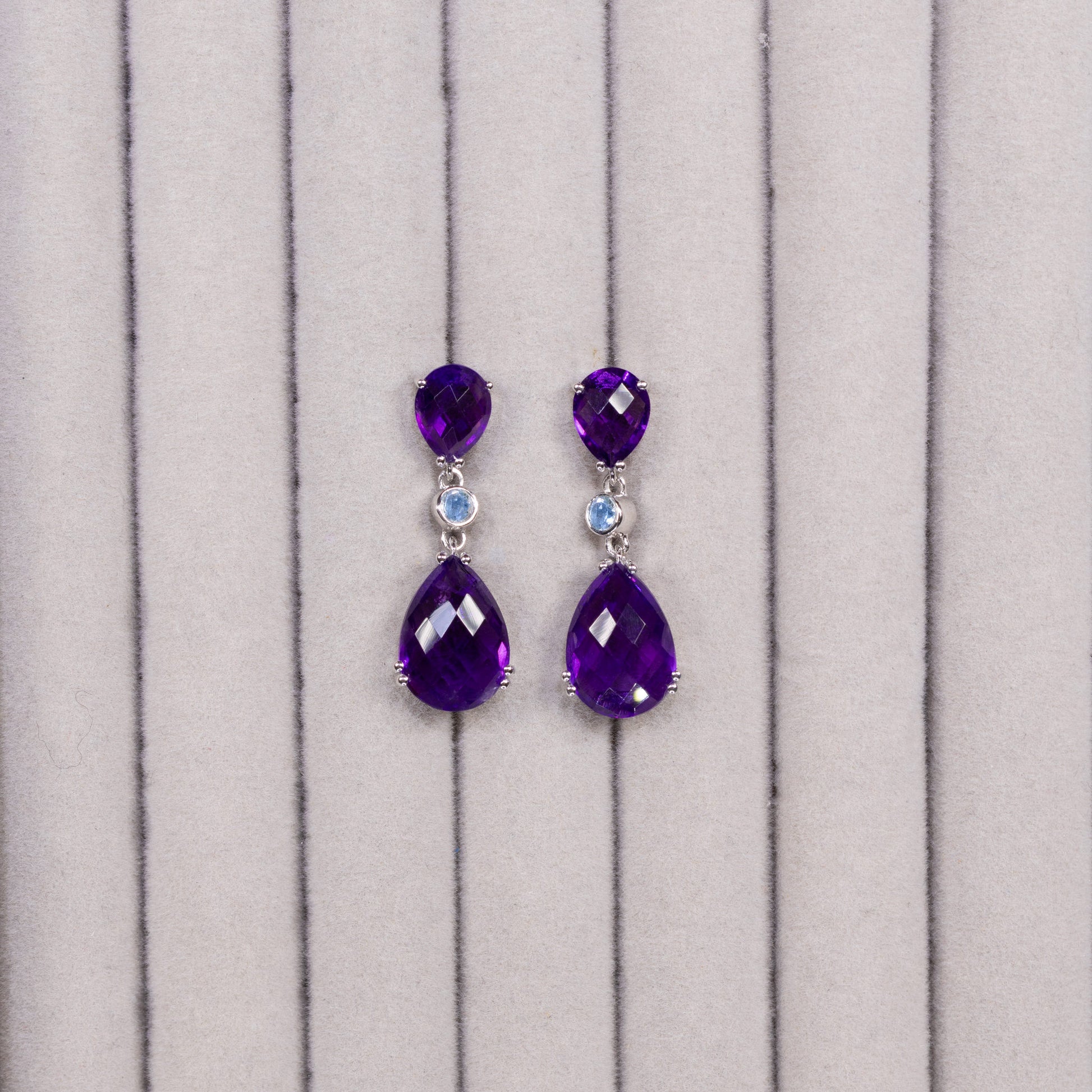 Rose Cut Amethyst Earrings Blue Topaz 11.8 Carats Sterling Silver