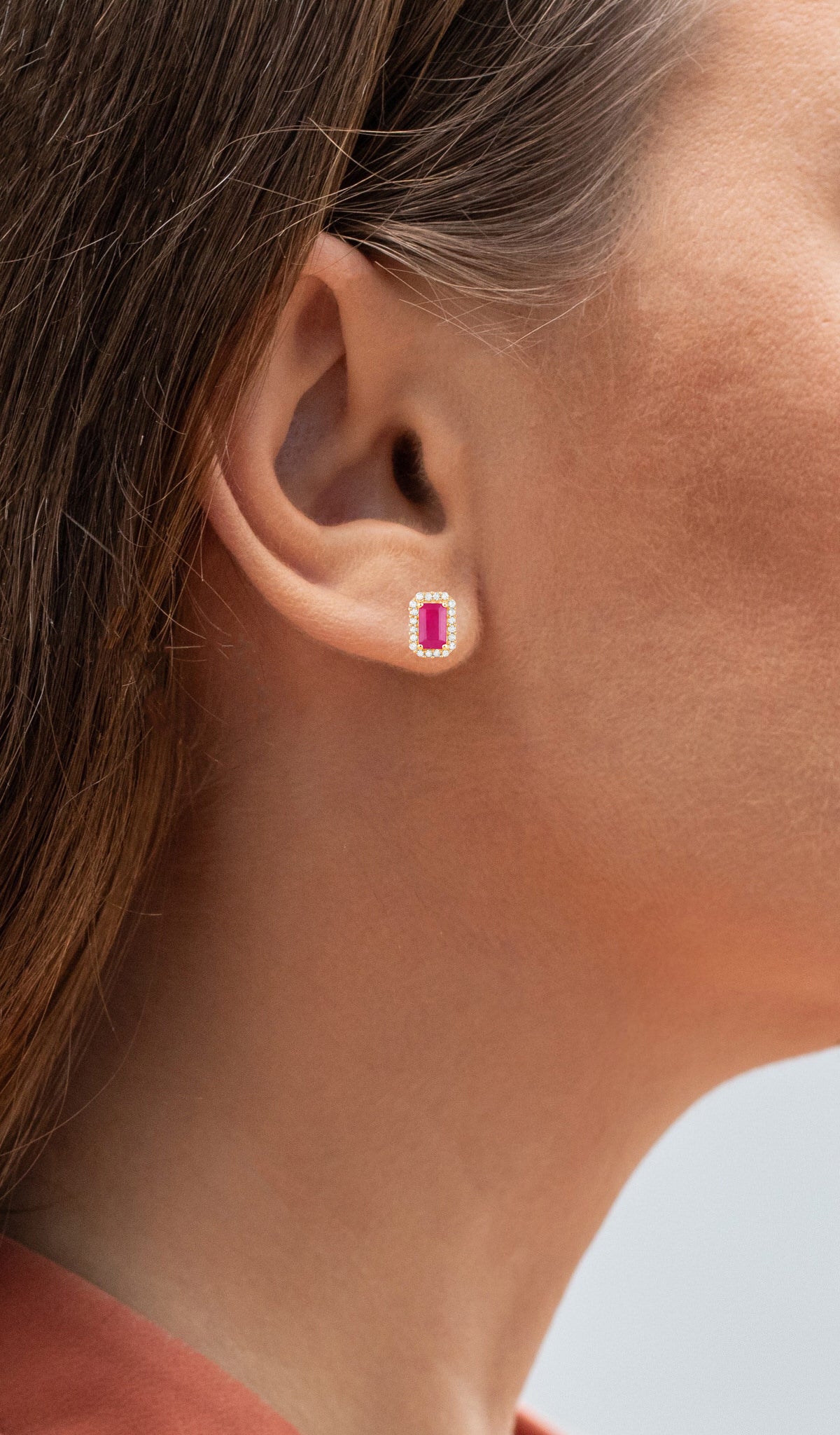 Ruby Earrings Diamond Halo 0.74 Carats 14K Yellow Gold