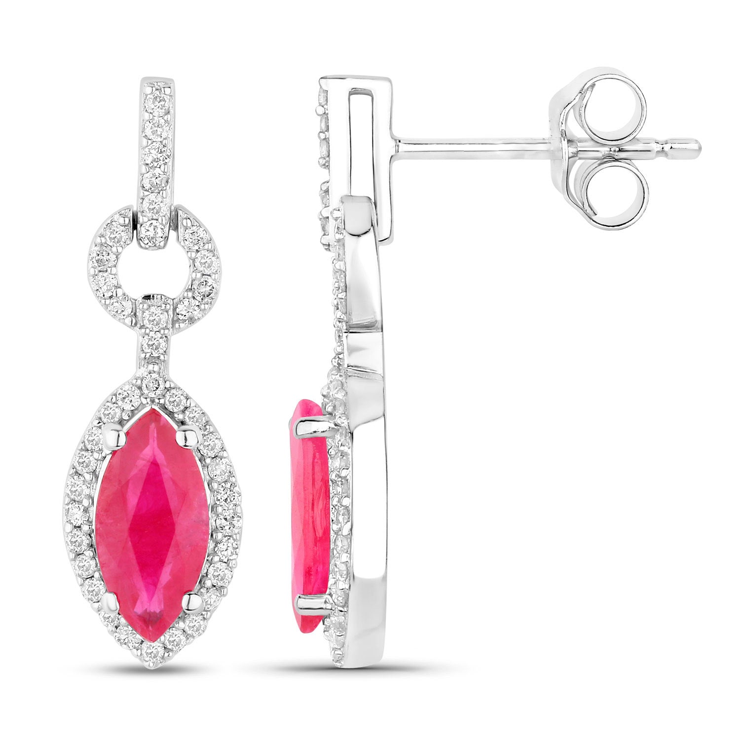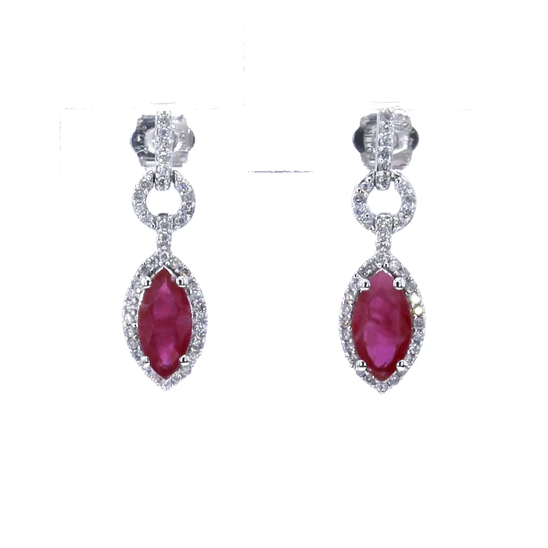 Ruby Earrings Diamonds 1.2 Carats 14K White Gold