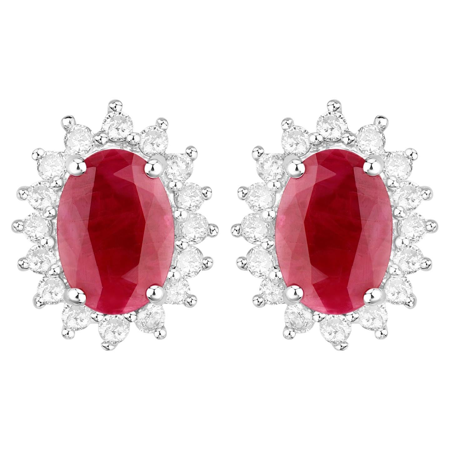Ruby Earrings Halo Diamonds 2 Carats 14K White Gold