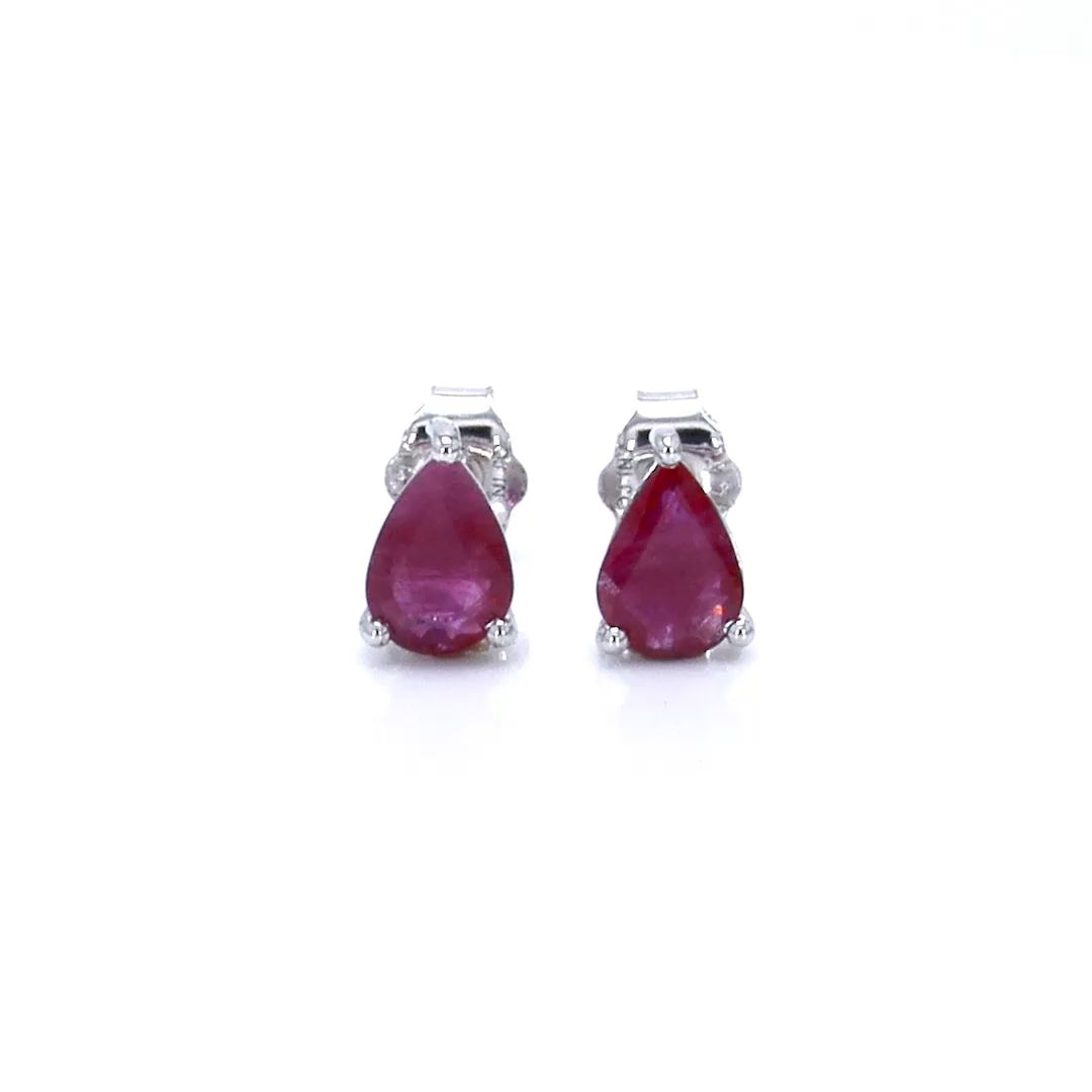 Ruby Stud Earrings 1.5 Carats 14K White Gold