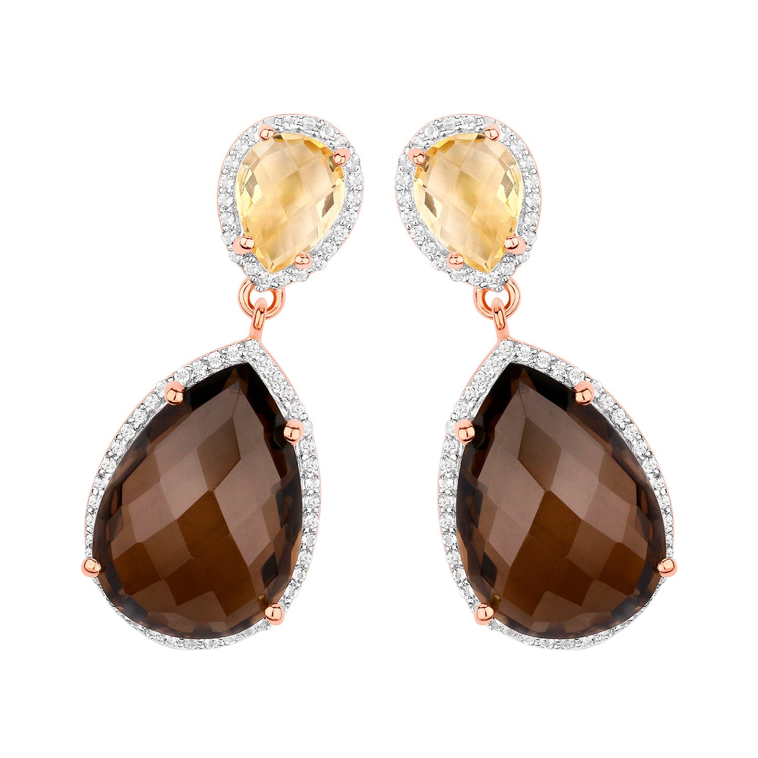 Smoky Quartz Dangle Earrings Citrine 20.7 Carats 18K Rose Gold Plated Silver