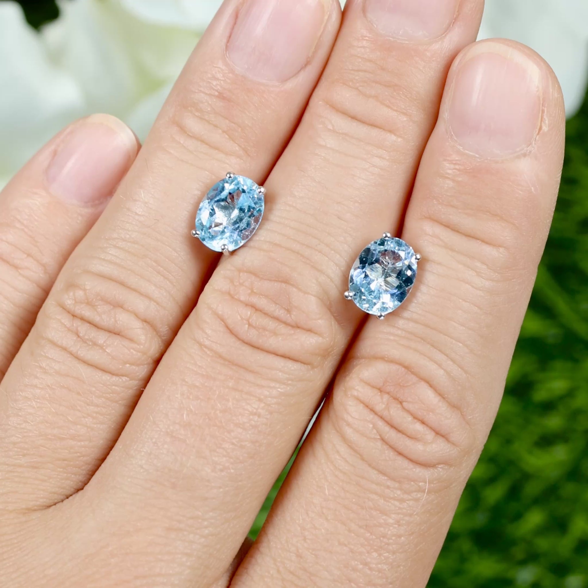 Swiss Blue Topaz Earrings 4 Carats Prong Set Sterling Silver